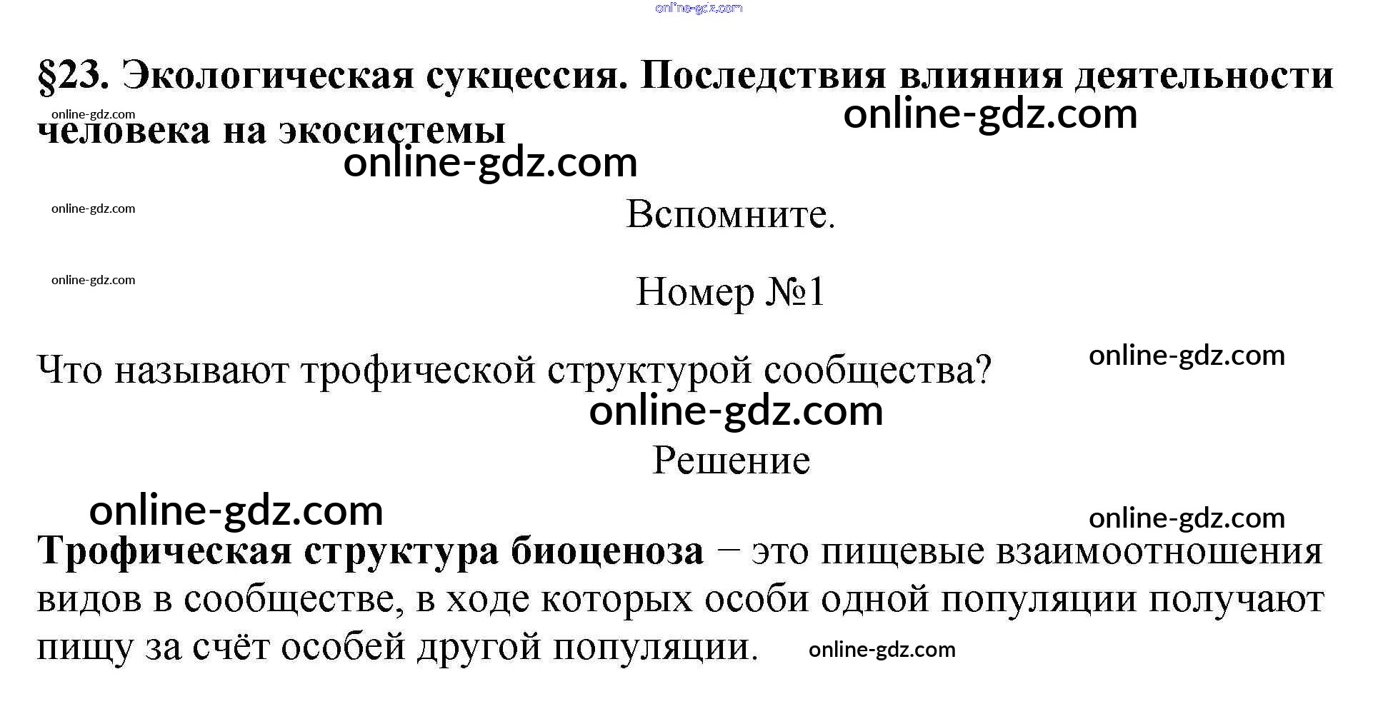 Готовые домашние задания по Биологии за 11 класс Учебник Пасечник, Каменский Линия жизни Базовый уровень 2018 - Вспомните §23. Экологическая сукцессия. Последствия влияния деятельности человека на экосистемы 1