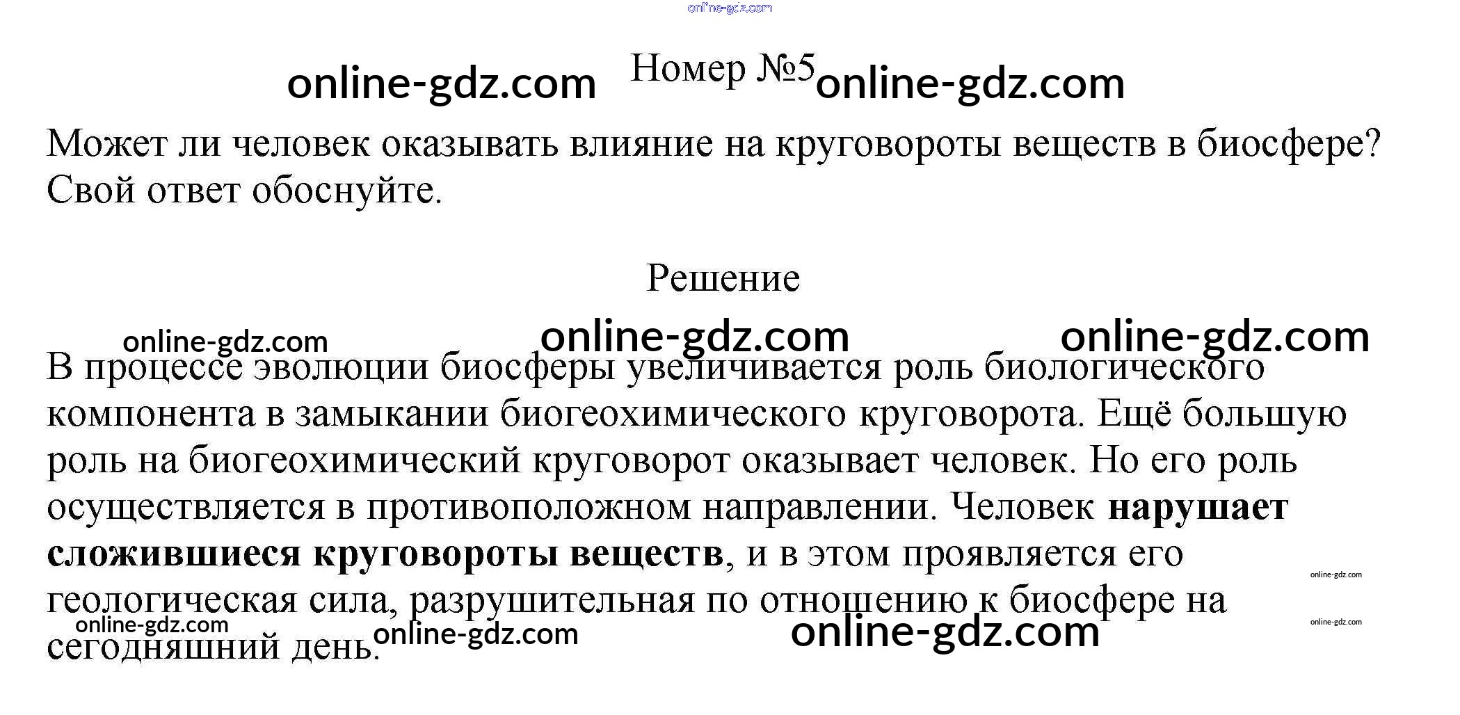 Готовые домашние задания по Биологии за 11 класс Учебник Пасечник, Каменский Линия жизни Базовый уровень 2018 - Тренируемся §25. Круговорот веществ в биосфере 5