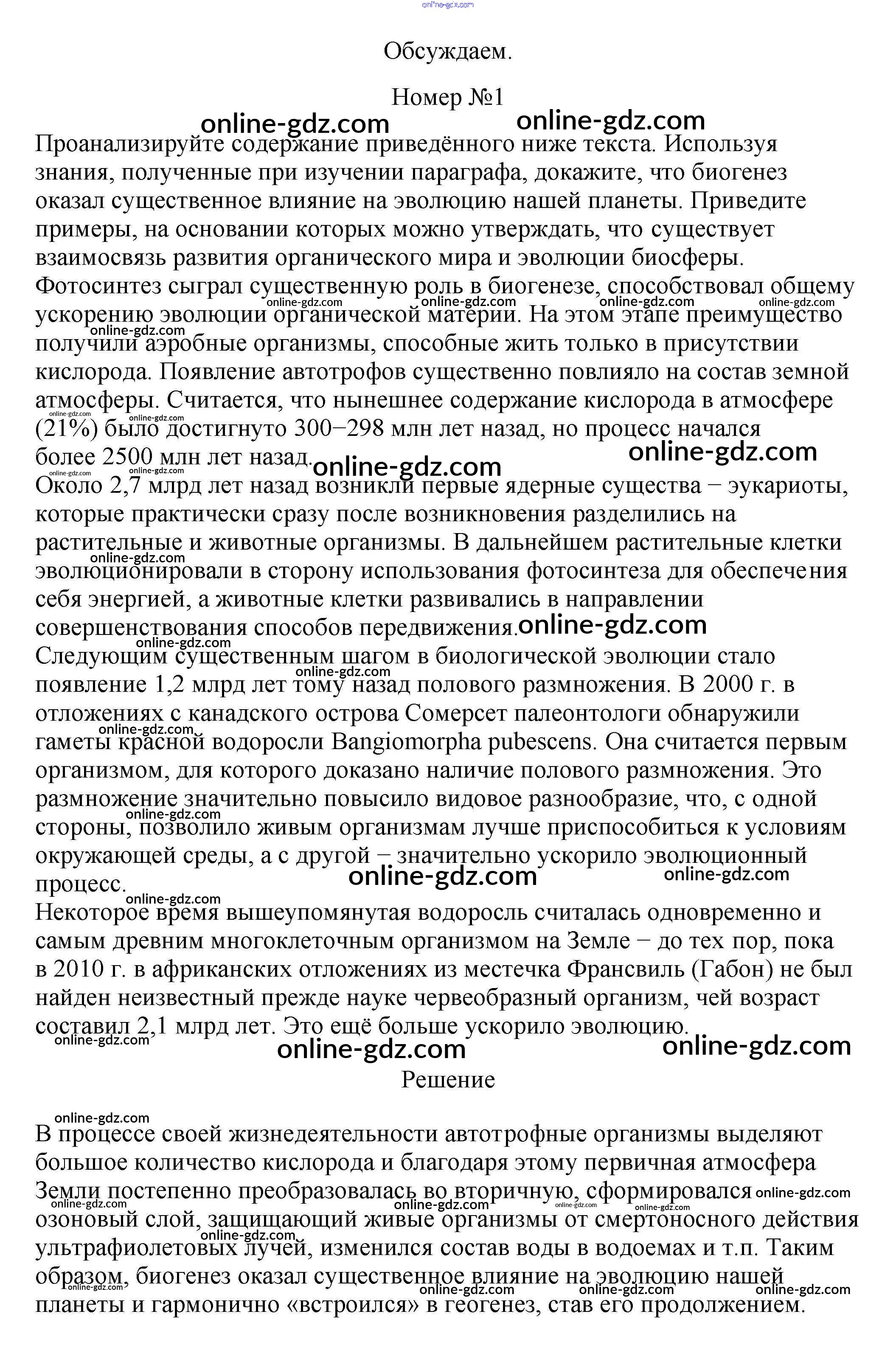 Готовые домашние задания по Биологии за 11 класс Учебник Пасечник, Каменский Линия жизни Базовый уровень 2018 - Обсуждаем §26. Эволюция биосфер 1