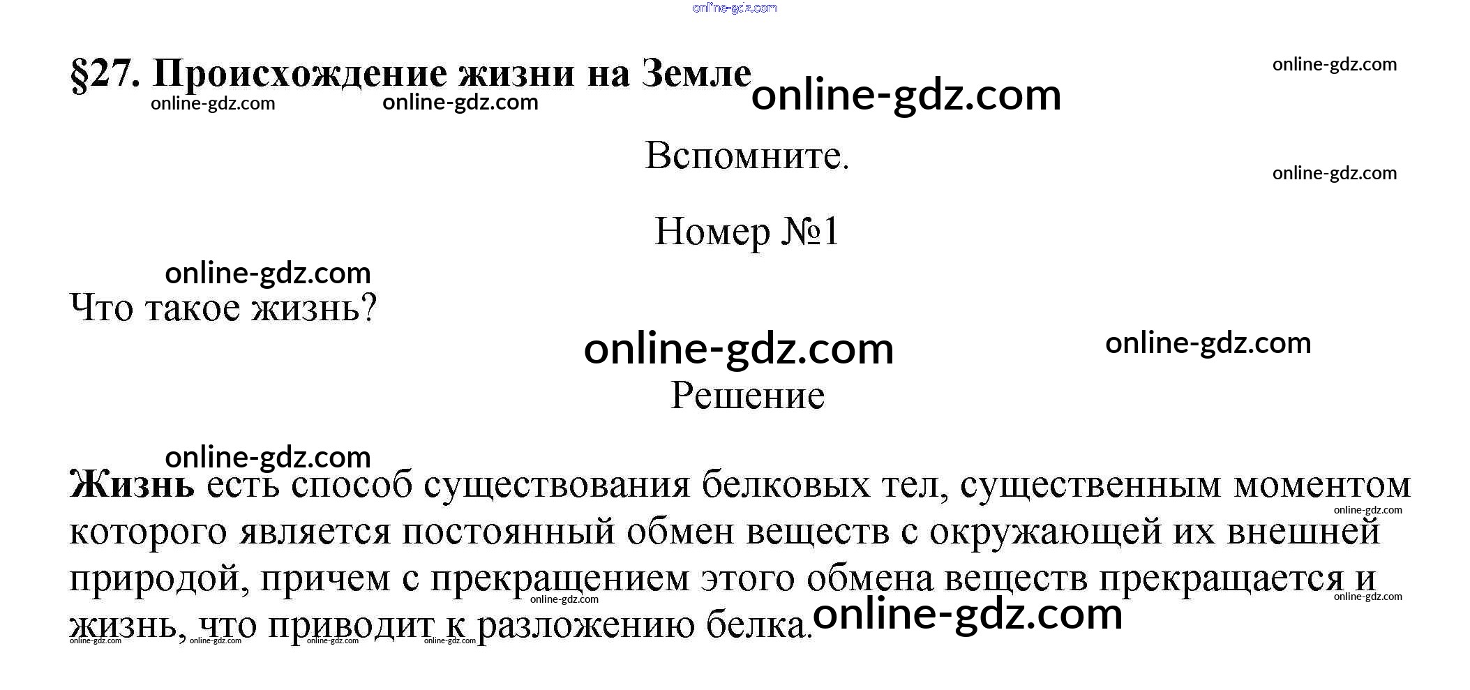 §27. происхождение жизни на земле / вспомните / 1