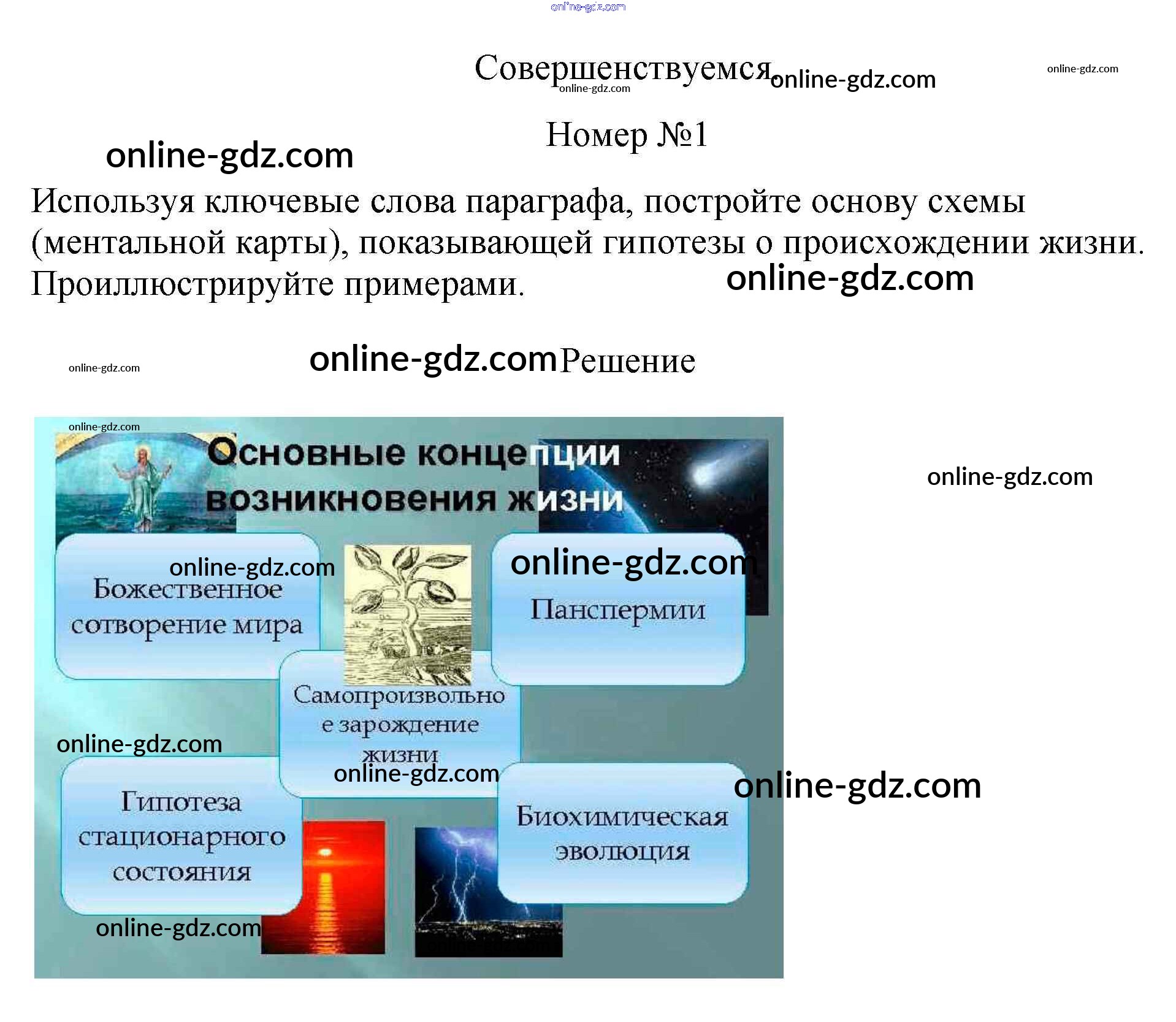 Готовые домашние задания по Биологии за 11 класс Учебник Пасечник, Каменский Линия жизни Базовый уровень 2018 - Совершенствуемся §27. Происхождение жизни на земле 1