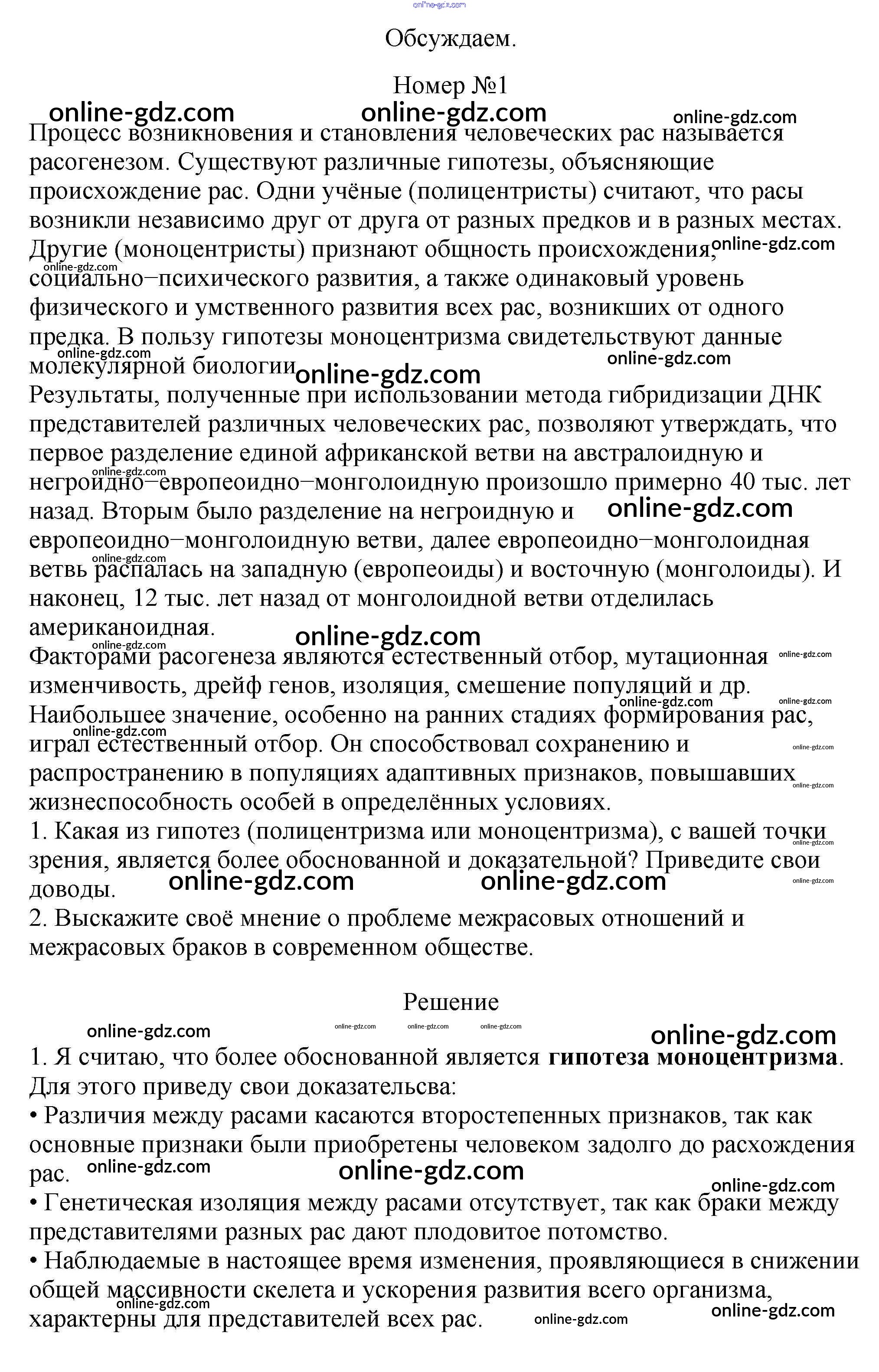 Готовые домашние задания по Биологии за 11 класс Учебник Пасечник, Каменский Линия жизни Базовый уровень 2018 - Обсуждаем §29. Эволюция человека 1