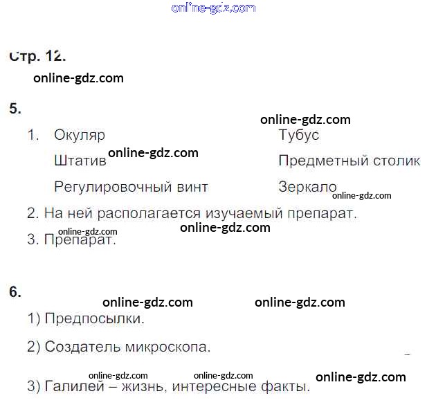 Готовые домашние задания по Биологии за 5 класс Рабочая тетрадь Корнилова, Симонова 2020 - Страницы тетради 12