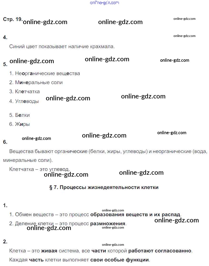 Готовые домашние задания по Биологии за 5 класс Рабочая тетрадь Корнилова, Симонова 2020 - Страницы тетради 19