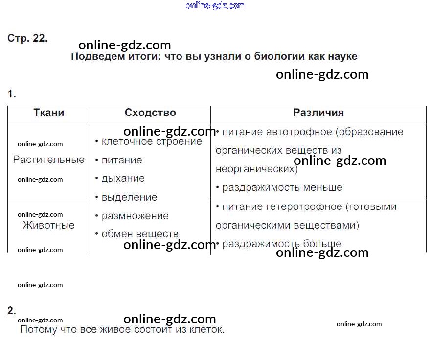 Готовые домашние задания по Биологии за 5 класс Рабочая тетрадь Корнилова, Симонова 2020 - Страницы тетради 22