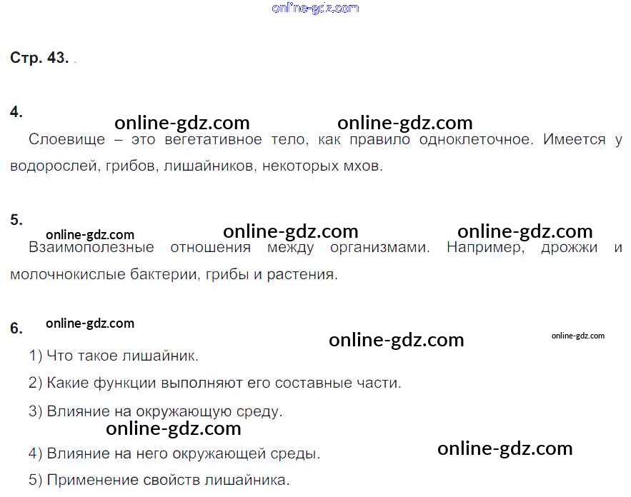 Готовые домашние задания по Биологии за 5 класс Рабочая тетрадь Корнилова, Симонова 2020 - Страницы тетради 43