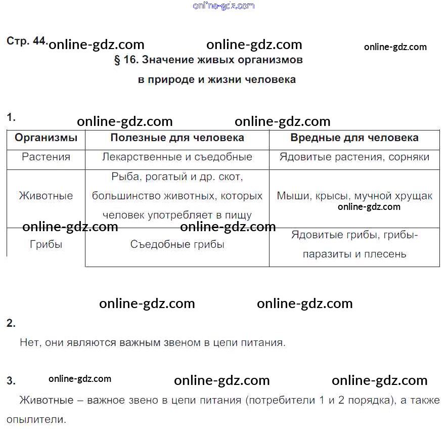 Готовые домашние задания по Биологии за 5 класс Рабочая тетрадь Корнилова, Симонова 2020 - Страницы тетради 44