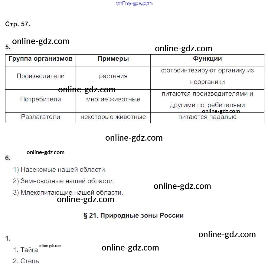 Готовые домашние задания по Биологии за 5 класс Рабочая тетрадь Корнилова, Симонова 2020 - Страницы тетради 57