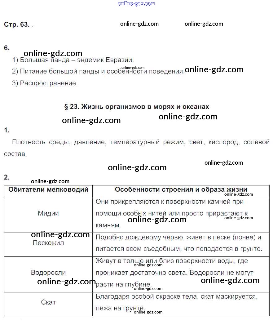 Готовые домашние задания по Биологии за 5 класс Рабочая тетрадь Корнилова, Симонова 2020 - Страницы тетради 63