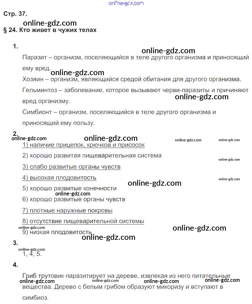 Готовые домашние задания по Биологии за 5 класс Рабочая тетрадь Новикова, Романова Инновационная школа 2019 - Страницы 37