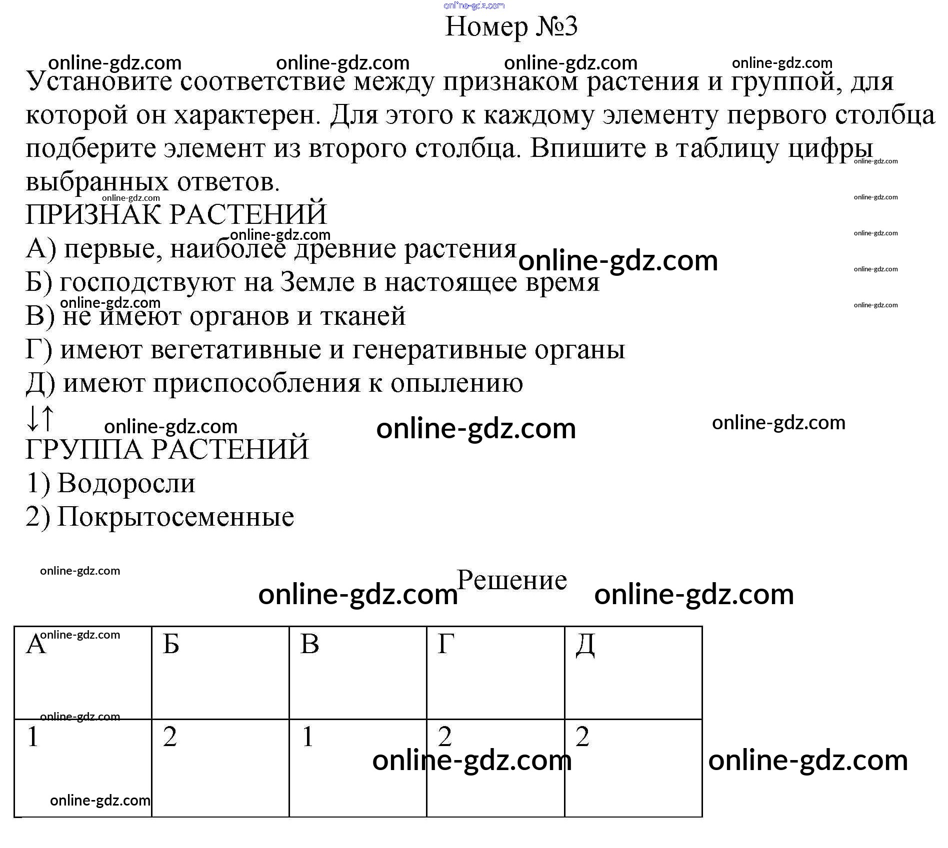 Готовые домашние задания по Биологии за 5 класс Рабочая тетрадь Пасечник, Суматохин Линия жизни 2015 - Тестовый контроль №3 Рабочая тетрадь 2020 3