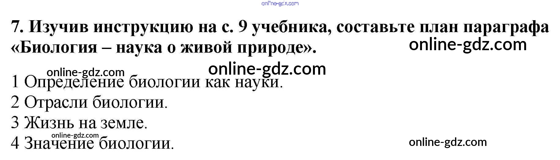 Готовые домашние задания по Биологии за 5 класс Рабочая тетрадь Пасечник, Суматохин Линия жизни 2015 - Урок 1 Рабочая тетрадь 2015 7