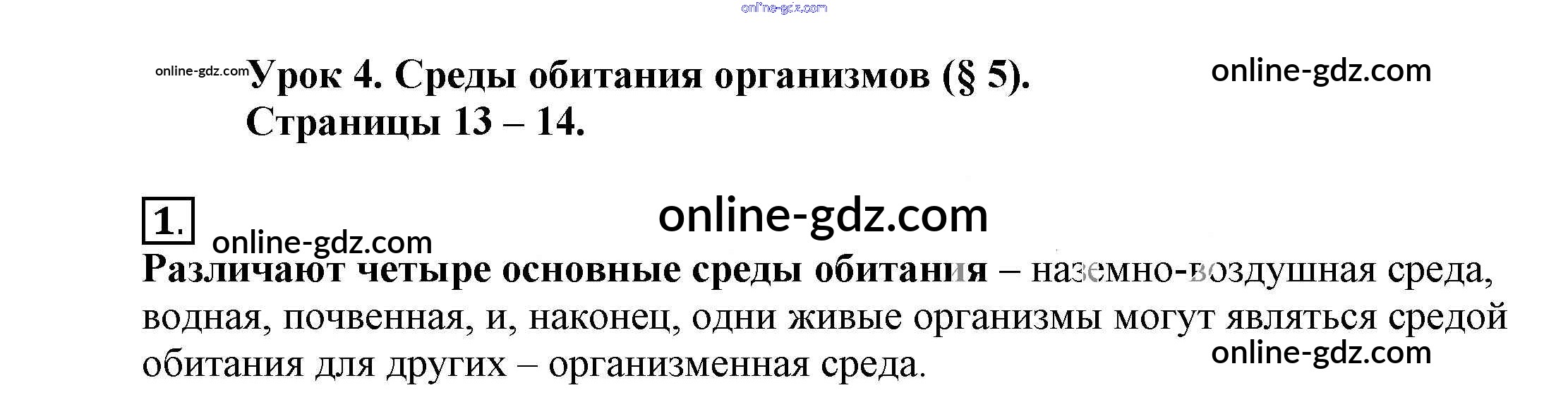 Готовые домашние задания по Биологии за 5 класс Рабочая тетрадь Пасечник, Суматохин Линия жизни 2015 - Урок 4 Рабочая тетрадь 2015 1