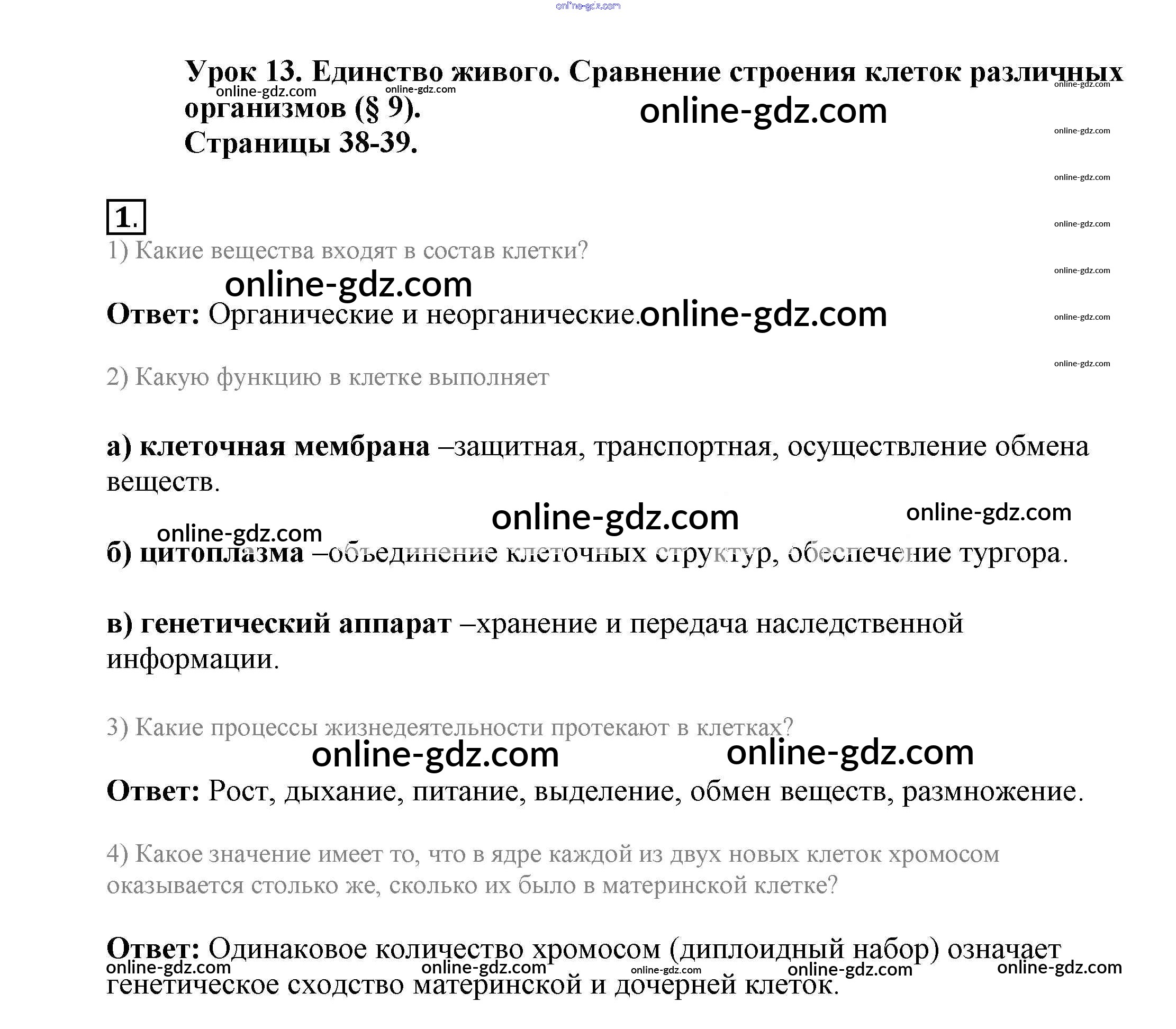 Готовые домашние задания по Биологии за 5 класс Рабочая тетрадь Пасечник, Суматохин Линия жизни 2015 - Урок 13 Рабочая тетрадь 2015 1