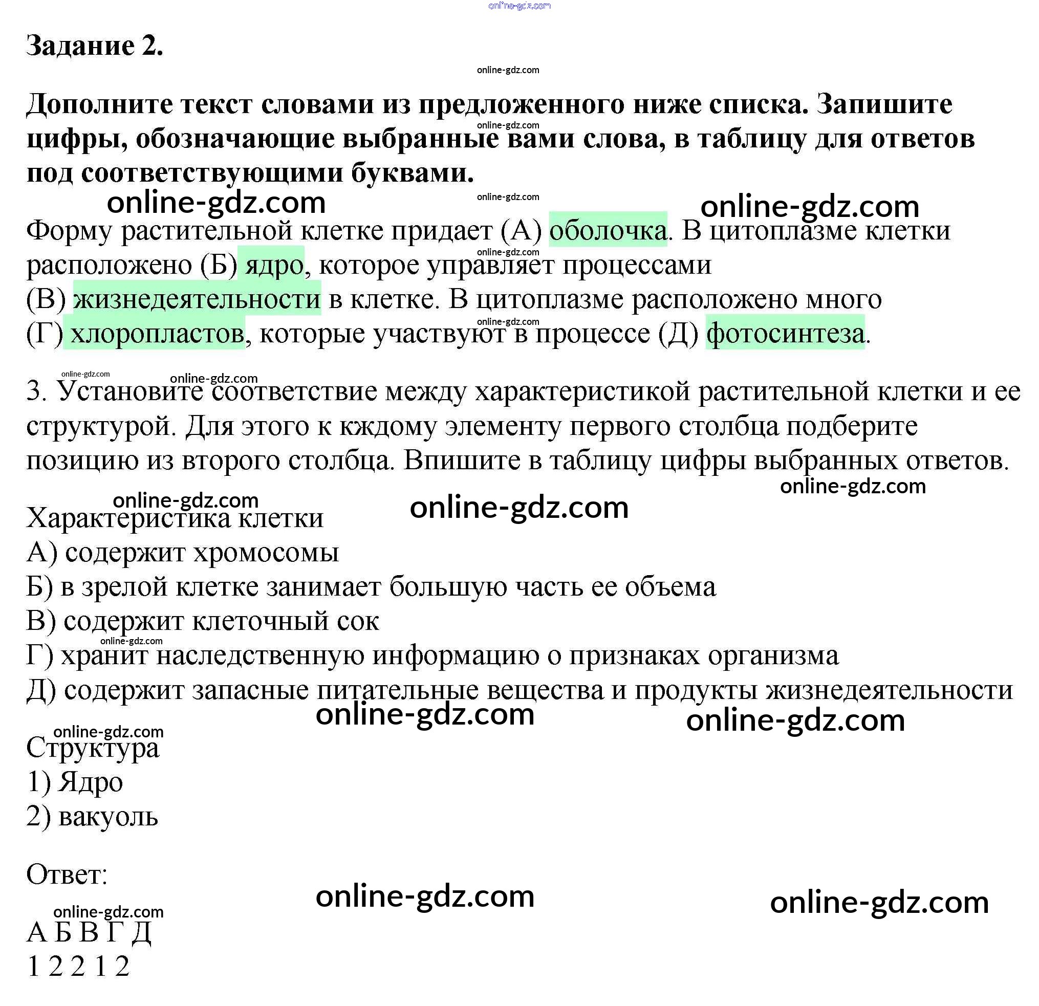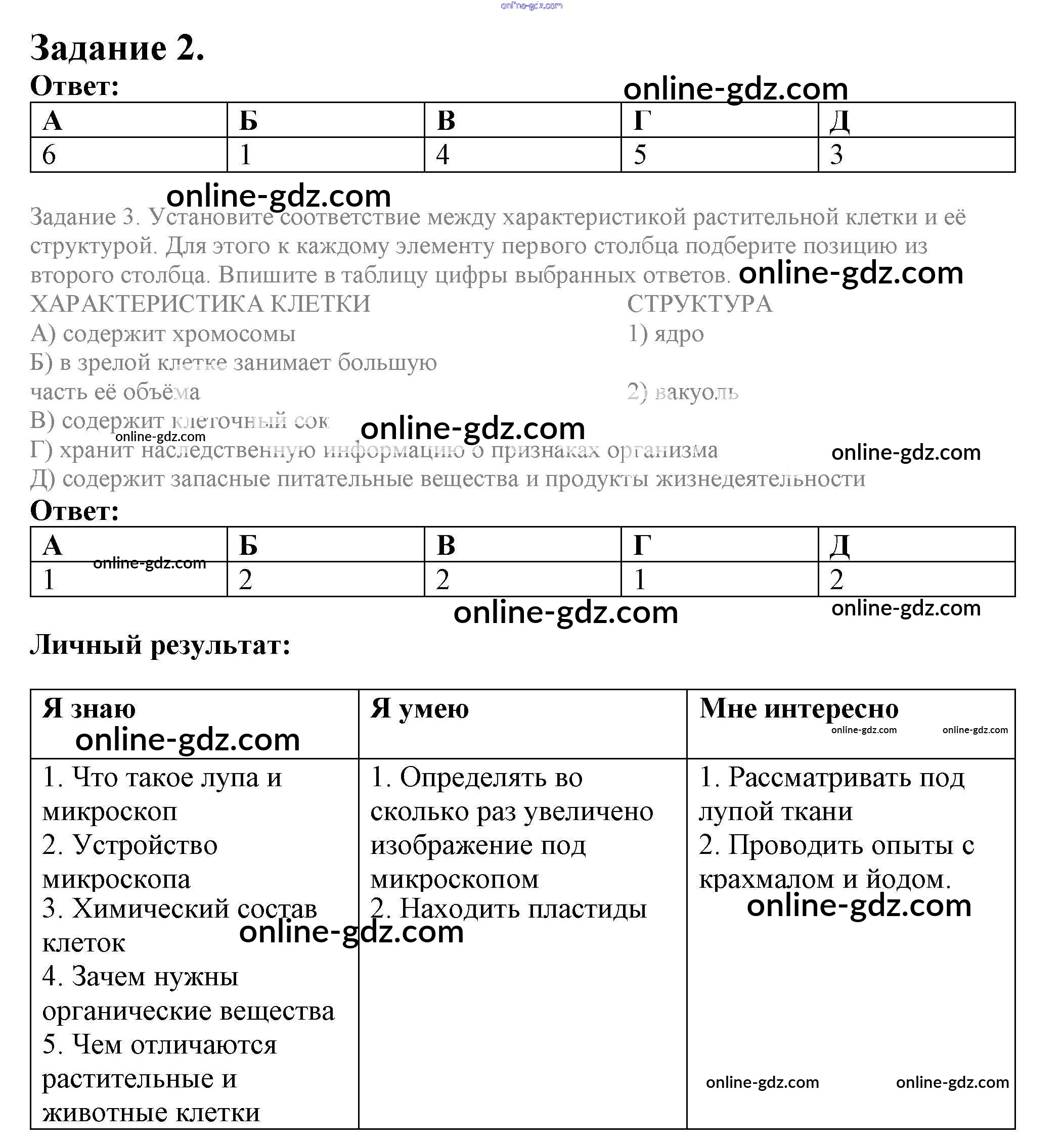 Готовые домашние задания по Биологии за 5 класс Рабочая тетрадь Пасечник, Суматохин Линия жизни 2015 - Тестовый контроль №2 Рабочая тетрадь 2015 2
