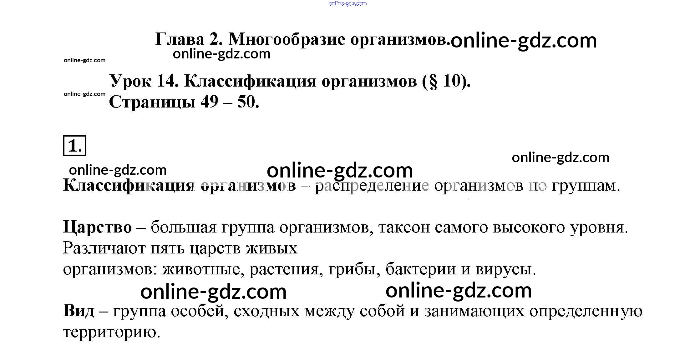 Готовые домашние задания по Биологии за 5 класс Рабочая тетрадь Пасечник, Суматохин Линия жизни 2015 - Урок 14 Рабочая тетрадь 2015 1