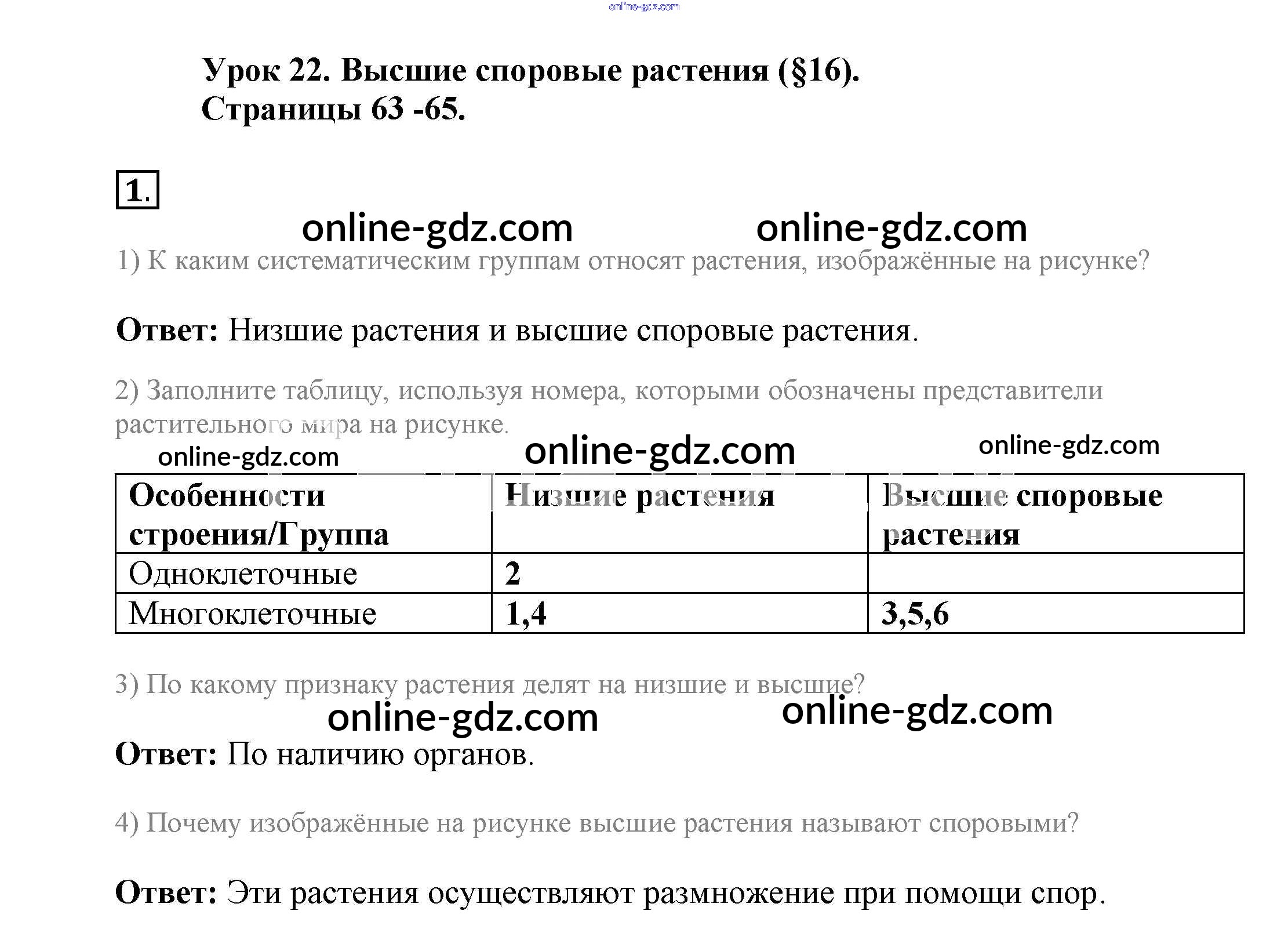 Готовые домашние задания по Биологии за 5 класс Рабочая тетрадь Пасечник, Суматохин Линия жизни 2015 - Урок 22 Рабочая тетрадь 2015 1