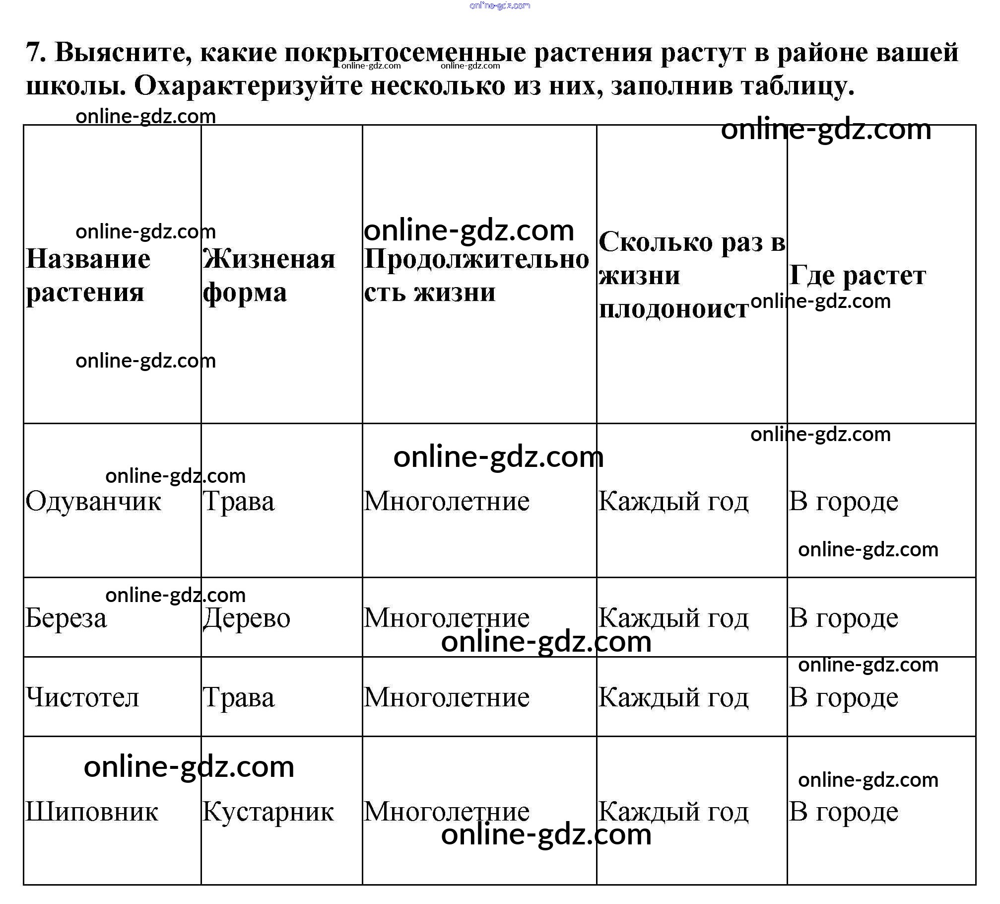 Готовые домашние задания по Биологии за 5 класс Рабочая тетрадь Пасечник, Суматохин Линия жизни 2015 - Урок 24 Рабочая тетрадь 2015 7