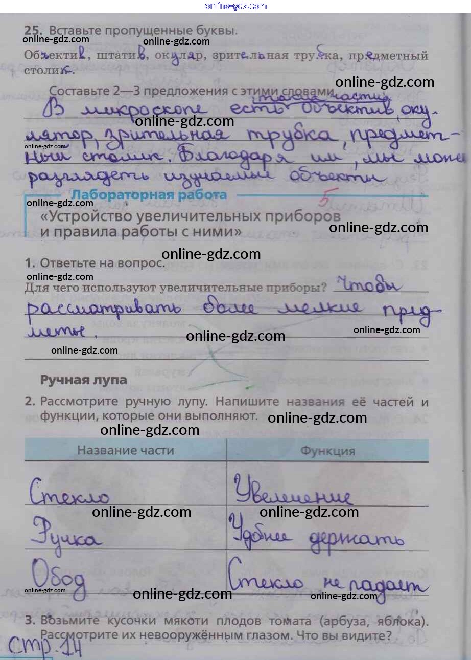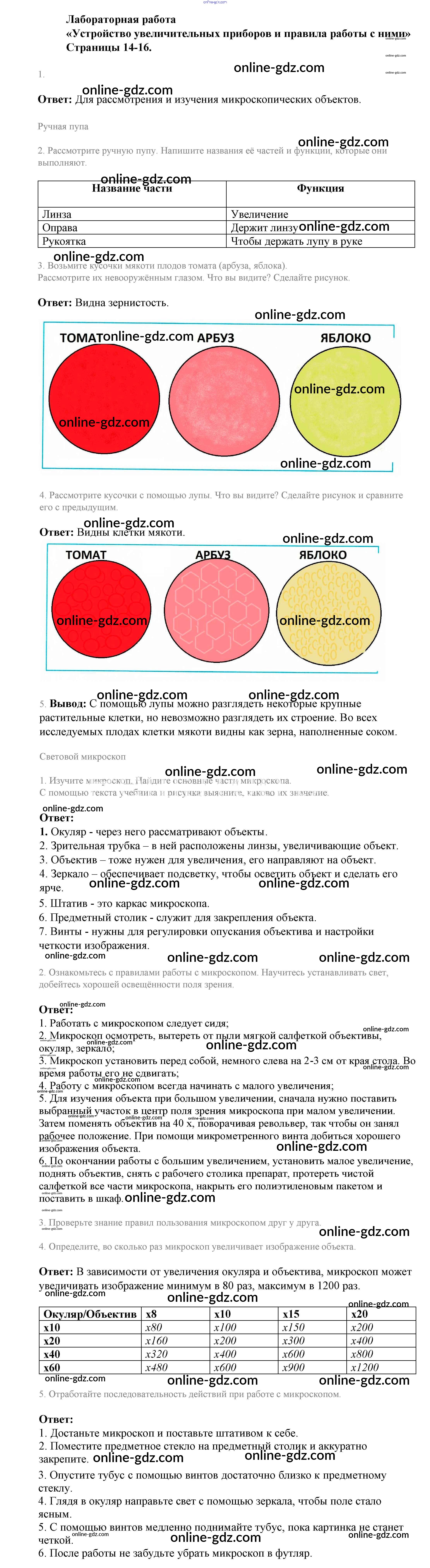 Готовые домашние задания по Биологии за 5 класс Рабочая тетрадь Сонин Вертикаль 2017 - Часть 1. Живой организм: строение и изучение (страницы) стр. 14
