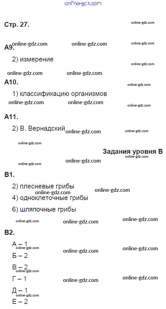 Готовые домашние задания по Биологии за 5 класс Рабочая тетрадь Сонин Вертикаль 2017 - Часть 1. Живой организм: строение и изучение (страницы) стр. 27