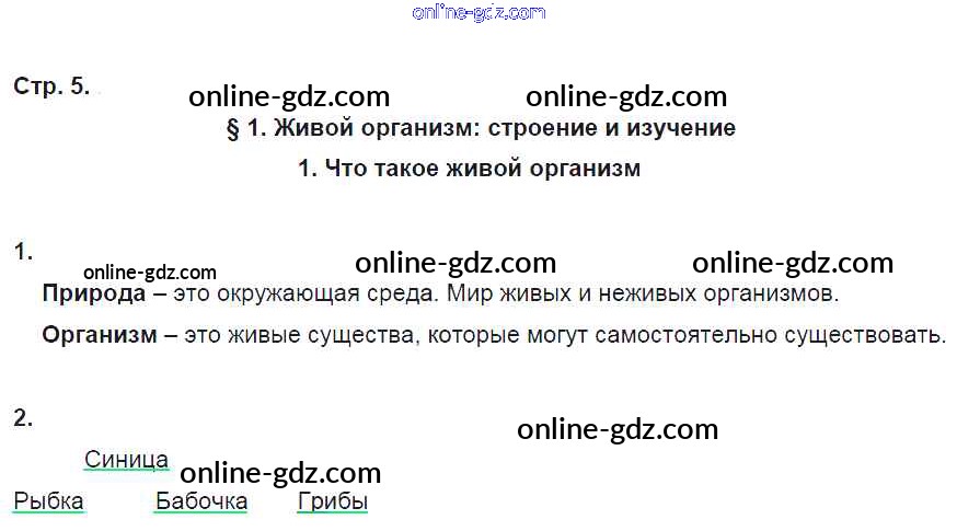 Готовые домашние задания по Биологии за 5 класс Рабочая тетрадь Сонин Вертикаль 2017 - Часть 1. Живой организм: строение и изучение (страницы) стр. 5