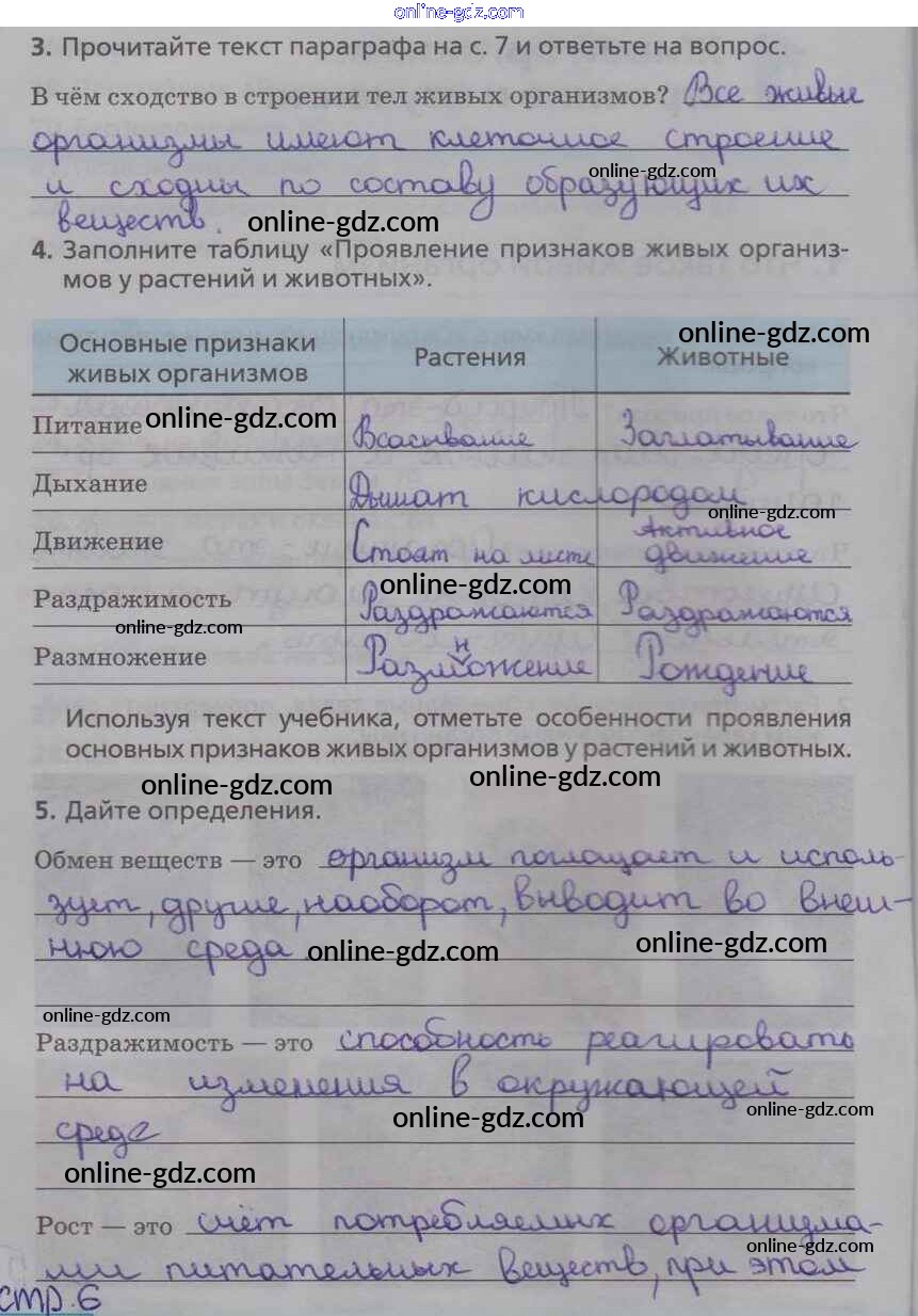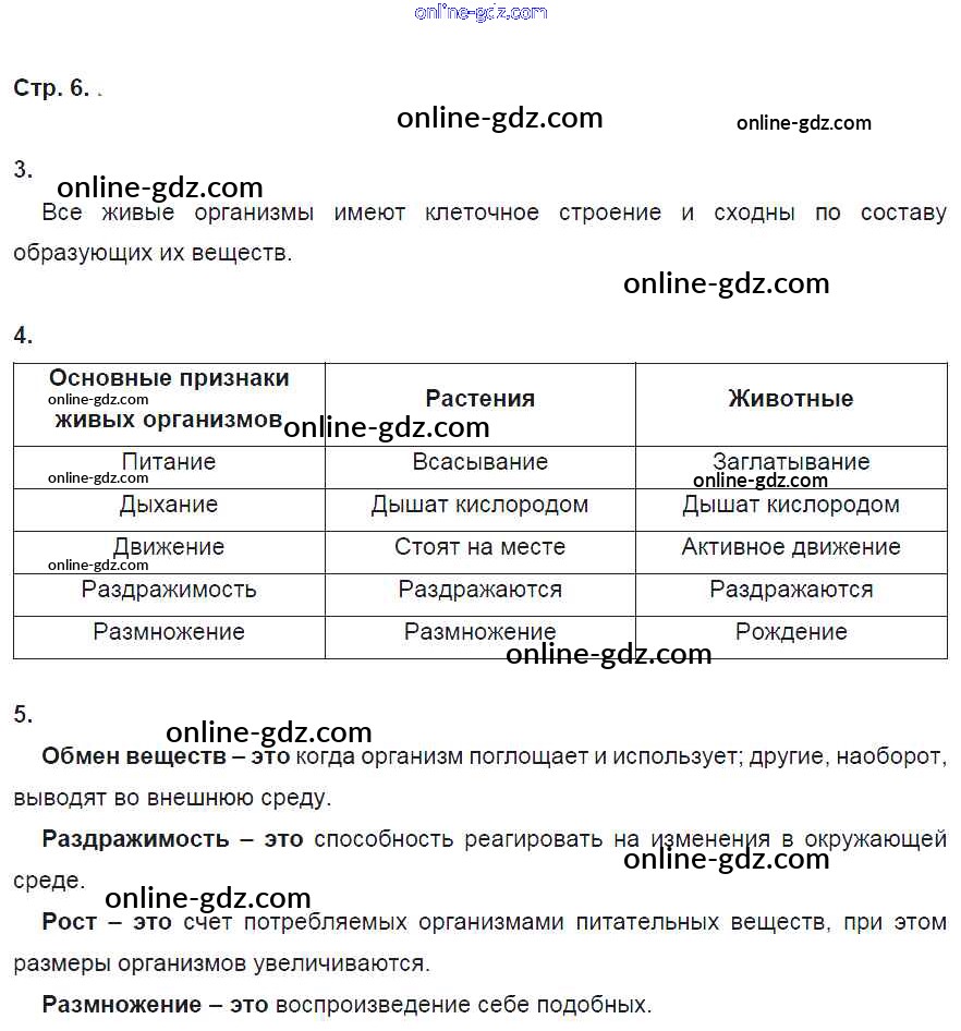 Готовые домашние задания по Биологии за 5 класс Рабочая тетрадь Сонин Вертикаль 2017 - Часть 1. Живой организм: строение и изучение (страницы) стр. 6