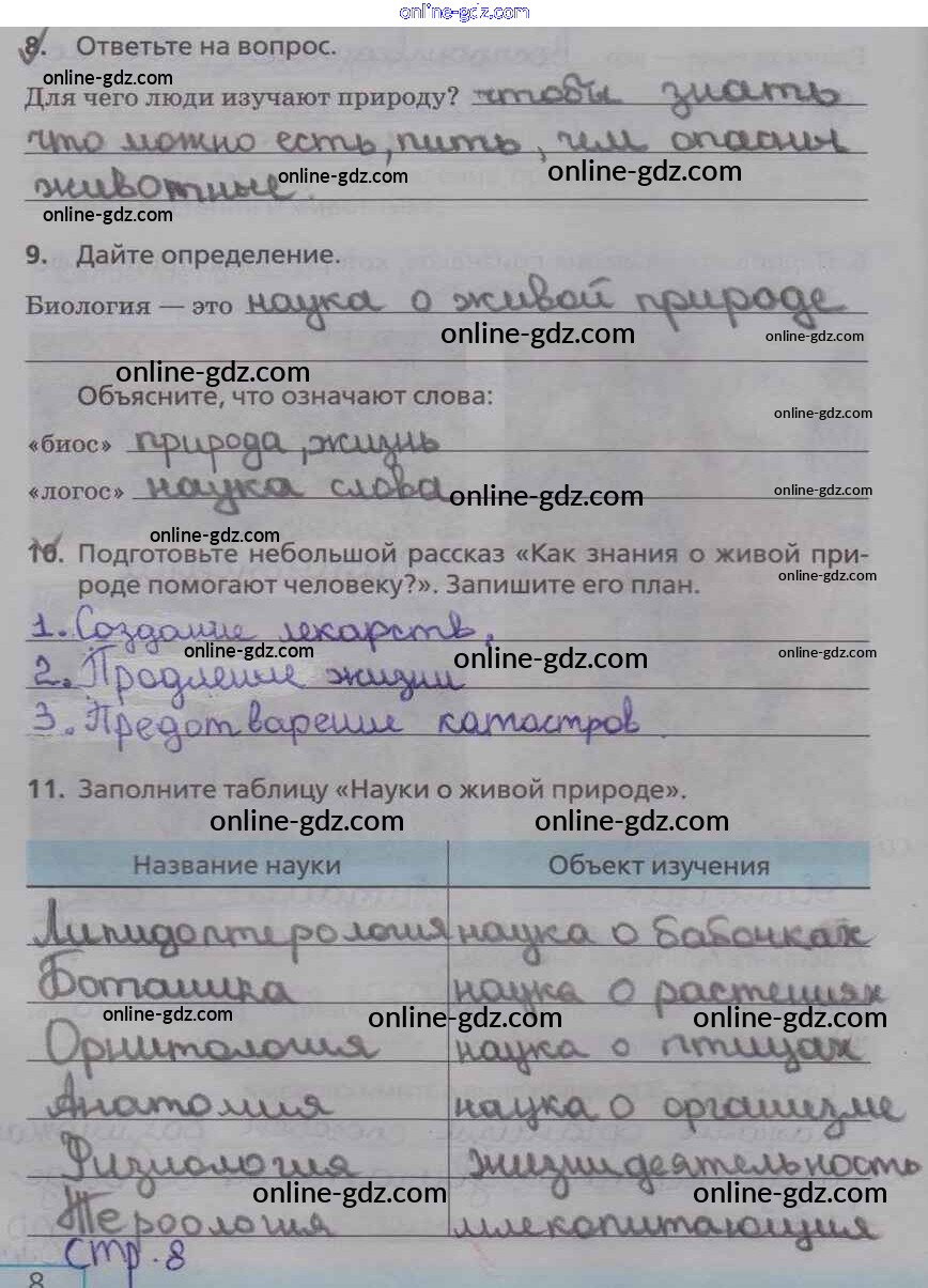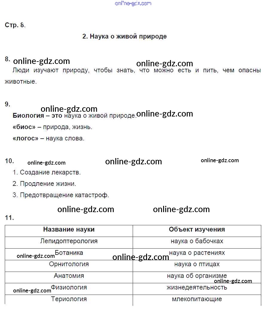 Готовые домашние задания по Биологии за 5 класс Рабочая тетрадь Сонин Вертикаль 2017 - Часть 1. Живой организм: строение и изучение (страницы) стр. 8