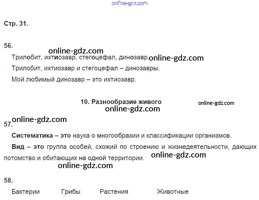 Готовые домашние задания по Биологии за 5 класс Рабочая тетрадь Сонин Вертикаль 2017 - Часть 2. Многообразие живых организмов (страницы) стр. 31
