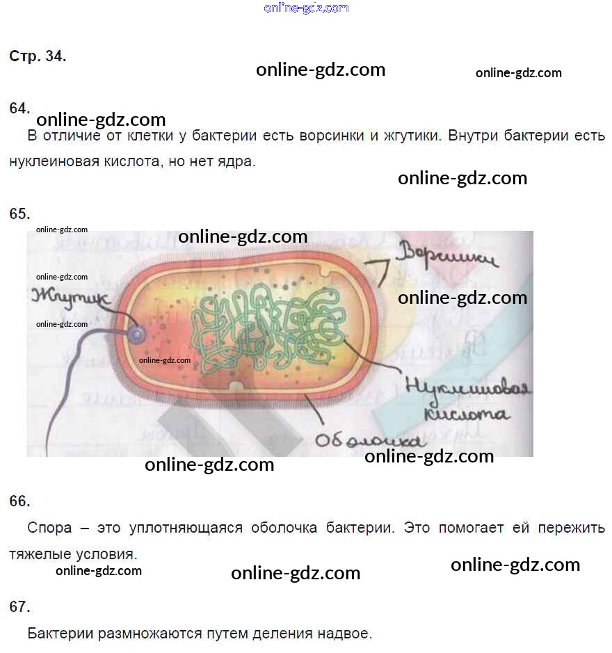 Готовые домашние задания по Биологии за 5 класс Рабочая тетрадь Сонин Вертикаль 2017 - Часть 2. Многообразие живых организмов (страницы) стр. 34