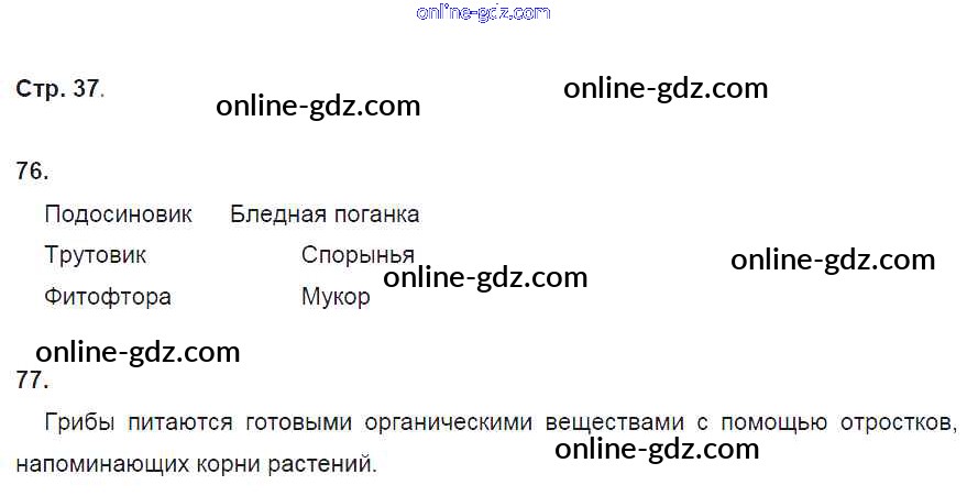 Готовые домашние задания по Биологии за 5 класс Рабочая тетрадь Сонин Вертикаль 2017 - Часть 2. Многообразие живых организмов (страницы) стр. 37