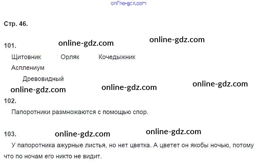 Готовые домашние задания по Биологии за 5 класс Рабочая тетрадь Сонин Вертикаль 2017 - Часть 2. Многообразие живых организмов (страницы) стр. 46