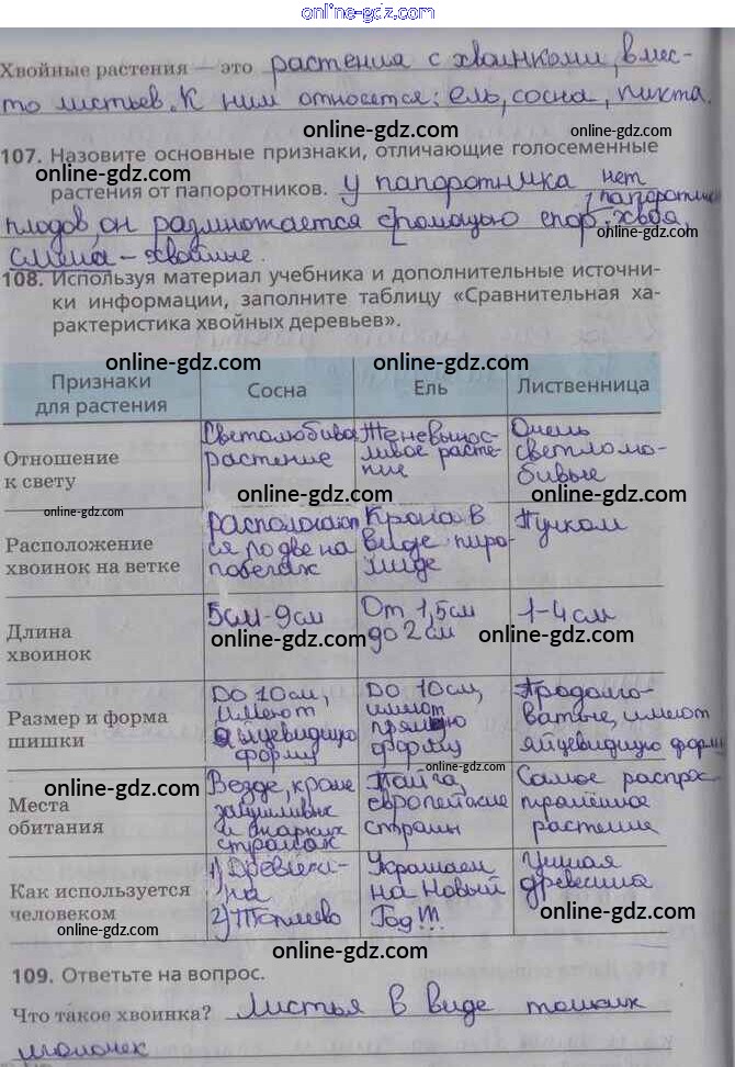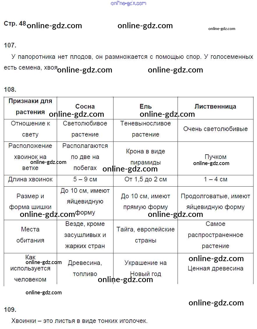 Готовые домашние задания по Биологии за 5 класс Рабочая тетрадь Сонин Вертикаль 2017 - Часть 2. Многообразие живых организмов (страницы) стр. 48