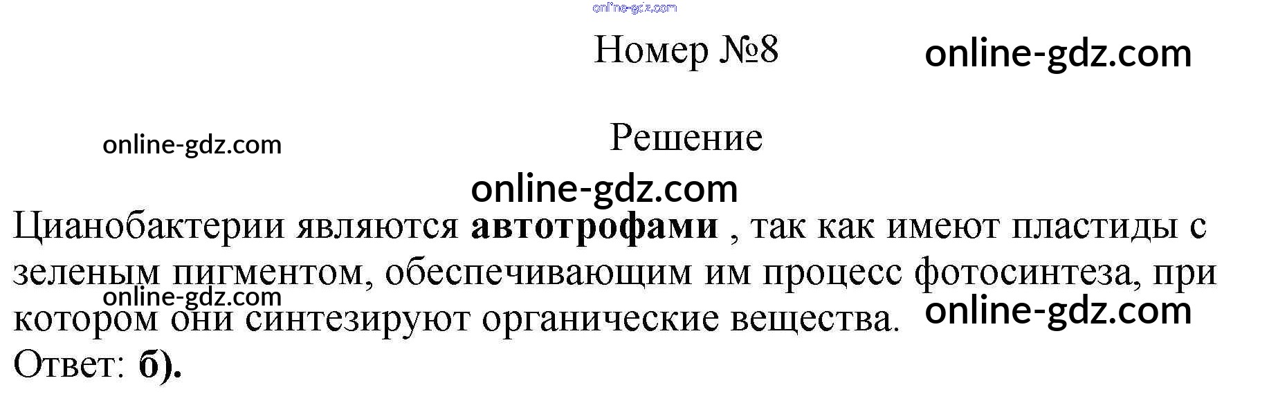 Готовые домашние задания по Биологии за 5 класс Тесты Пасечник, Ефимова УМК 2020 - Часть 1 §10 8
