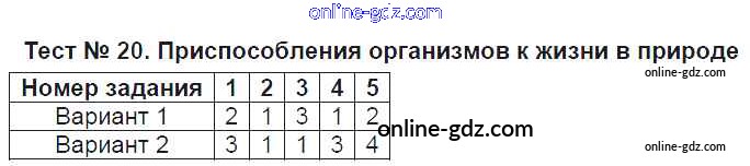 Готовые домашние задания по Биологии за 5 класс Тесты Богданов УМК 2017 - Тесты Тест №20. Приспособления организмов к жизни в природе