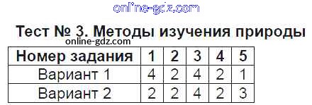 Готовые домашние задания по Биологии за 5 класс Тесты Богданов УМК 2017 - Тесты Тест №3. Методы изучения природы