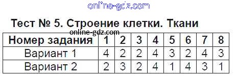 Готовые домашние задания по Биологии за 5 класс Тесты Богданов УМК 2017 - Тесты Тест №5. Строение клетки. Ткани
