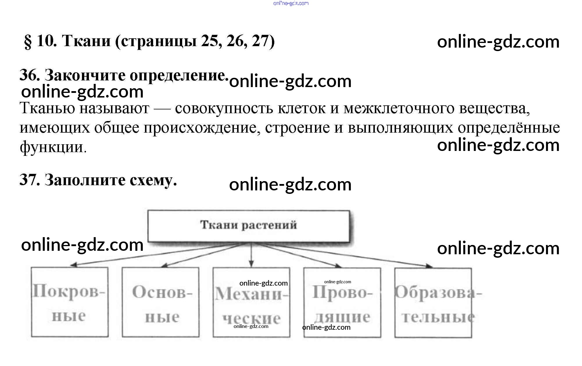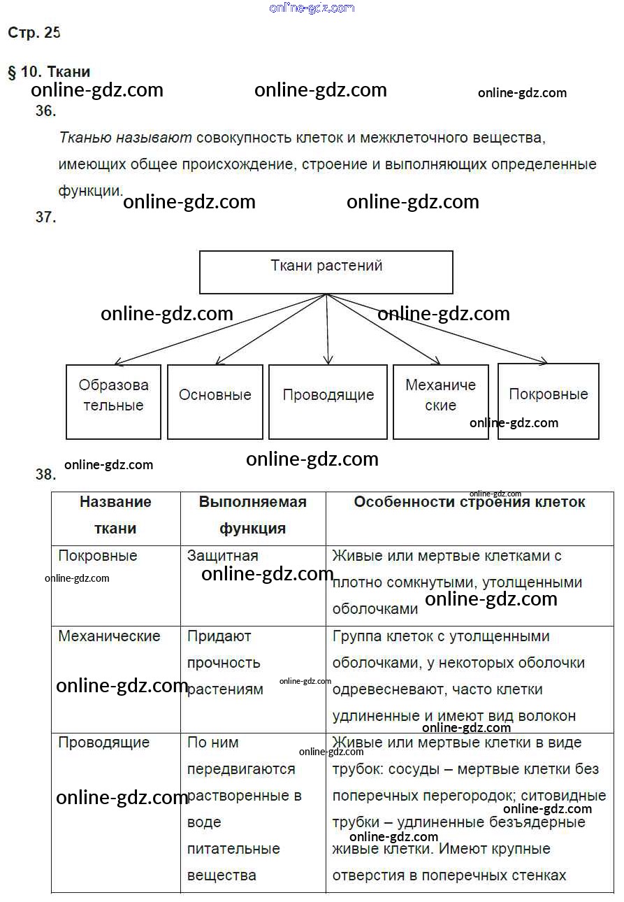 Готовые домашние задания по Биологии за 5 класс Рабочая тетрадь Пасечник Вертикаль 2015 - § 10. Ткани стр. 25