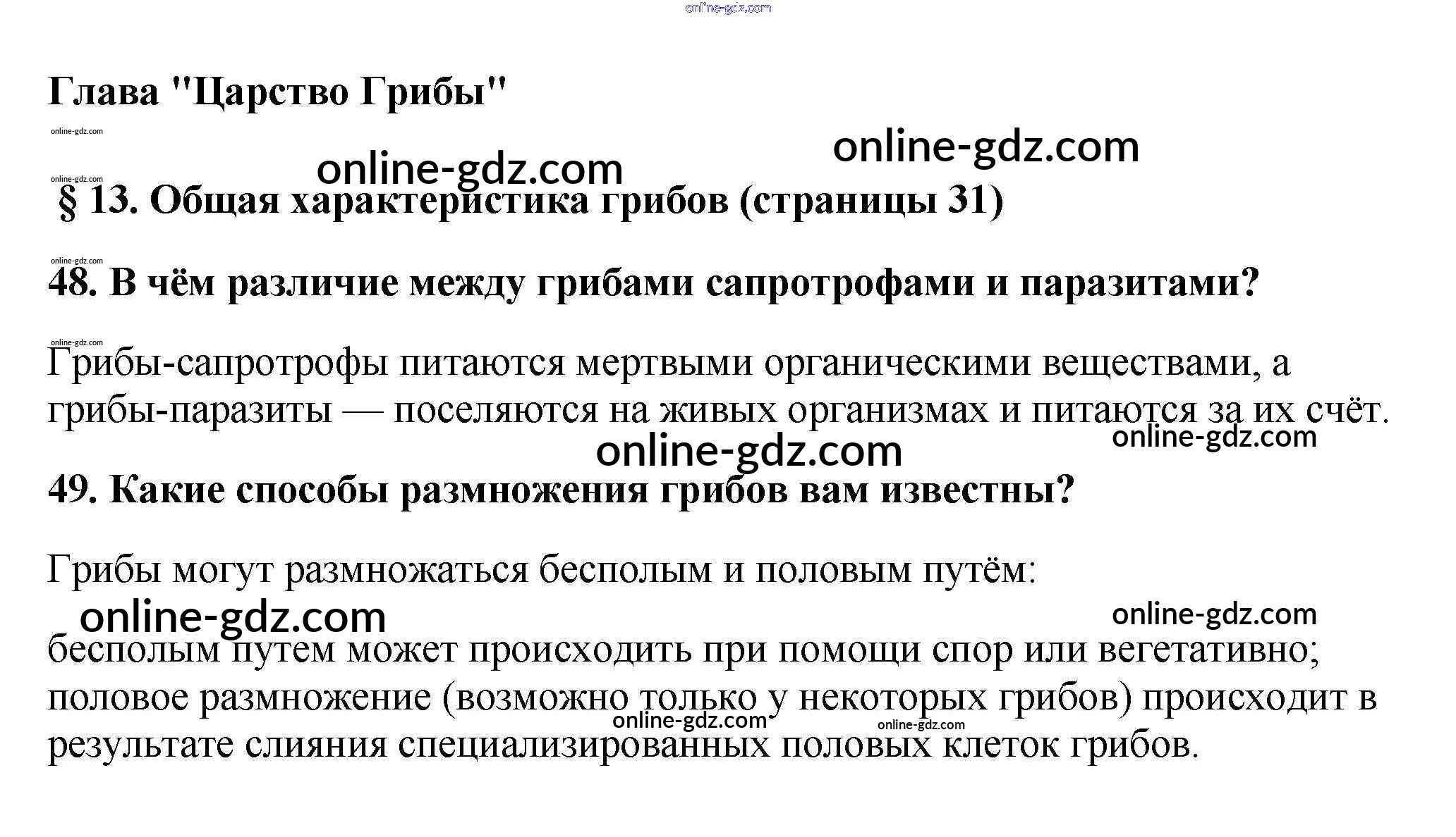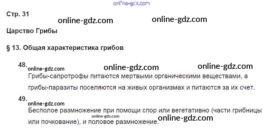 Готовые домашние задания по Биологии за 5 класс Рабочая тетрадь Пасечник Вертикаль 2015 - § 13. Общая характеристика грибов стр. 31