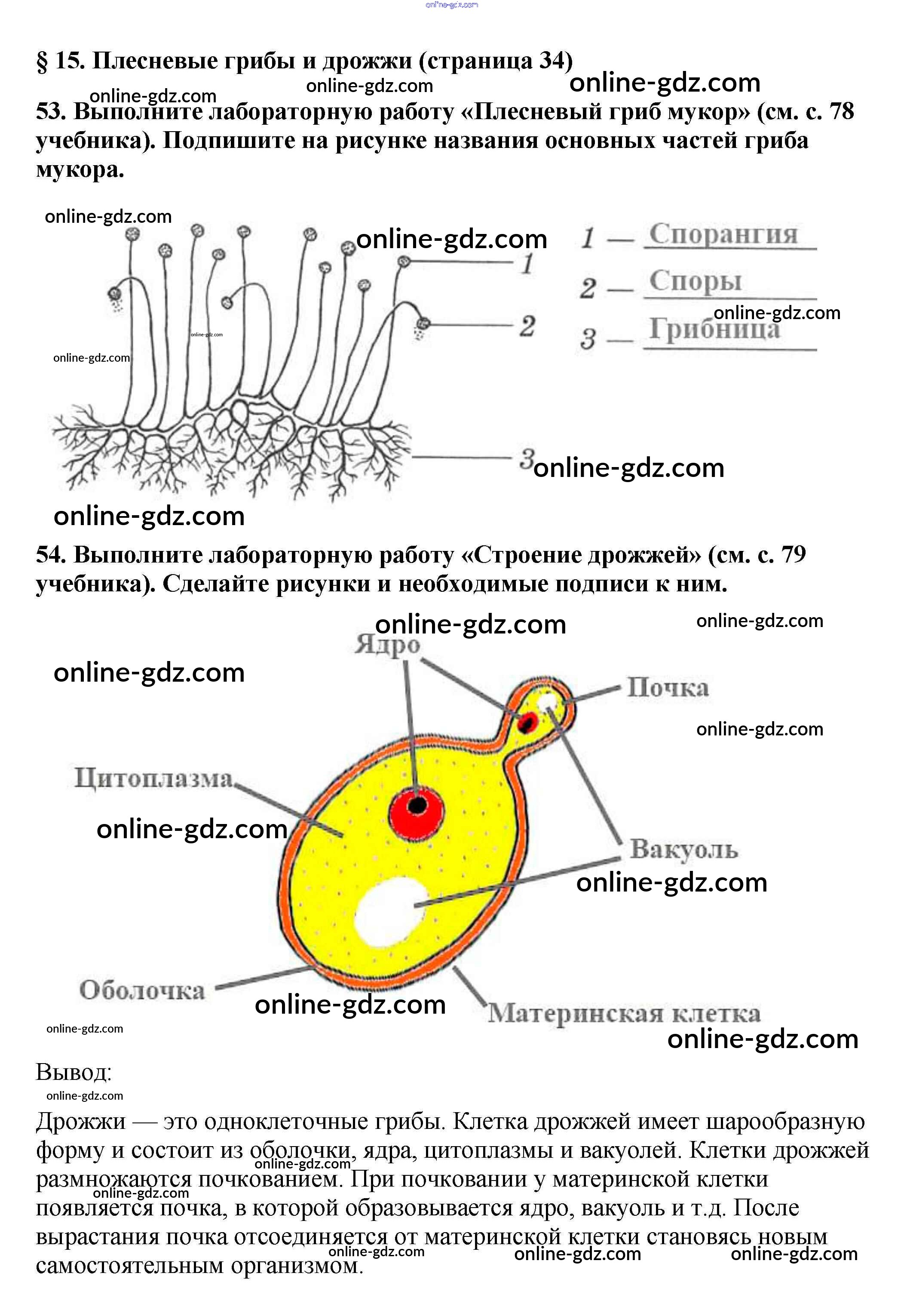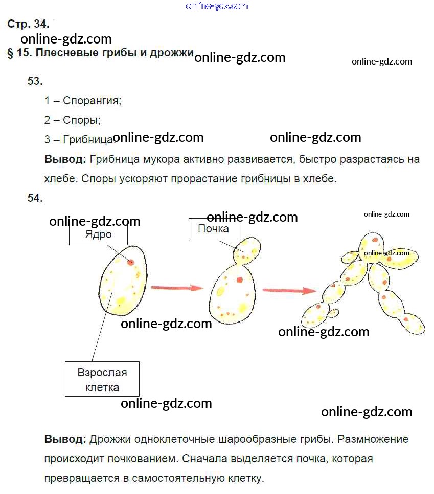 Готовые домашние задания по Биологии за 5 класс Рабочая тетрадь Пасечник Вертикаль 2015 - § 15. Плесневые грибы и дрожжи стр. 34