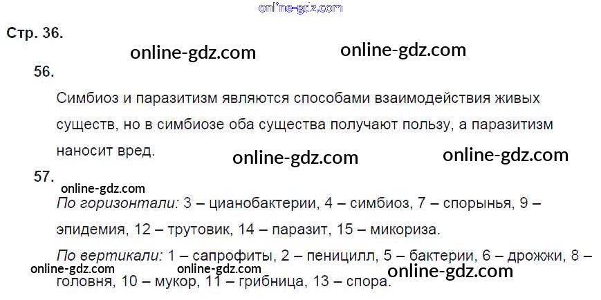 Готовые домашние задания по Биологии за 5 класс Рабочая тетрадь Пасечник Вертикаль 2015 - § 16. Грибы-паразиты стр. 36