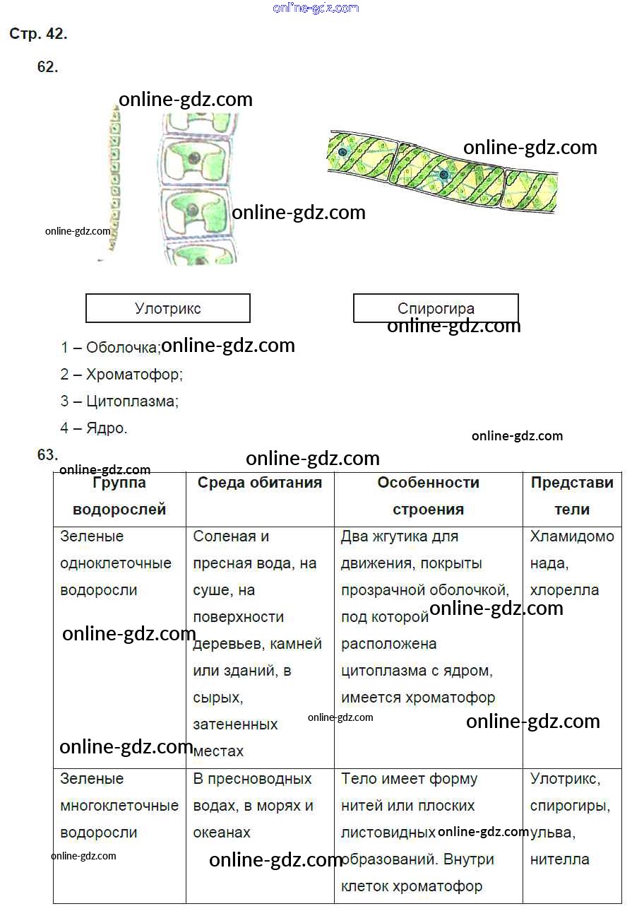 Готовые домашние задания по Биологии за 5 класс Рабочая тетрадь Пасечник Вертикаль 2015 - § 18. Водоросли стр. 42