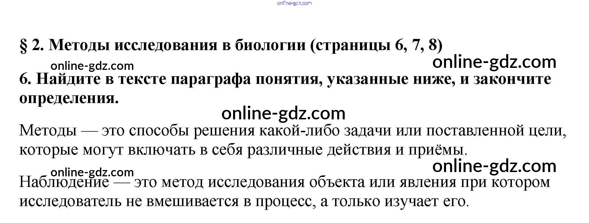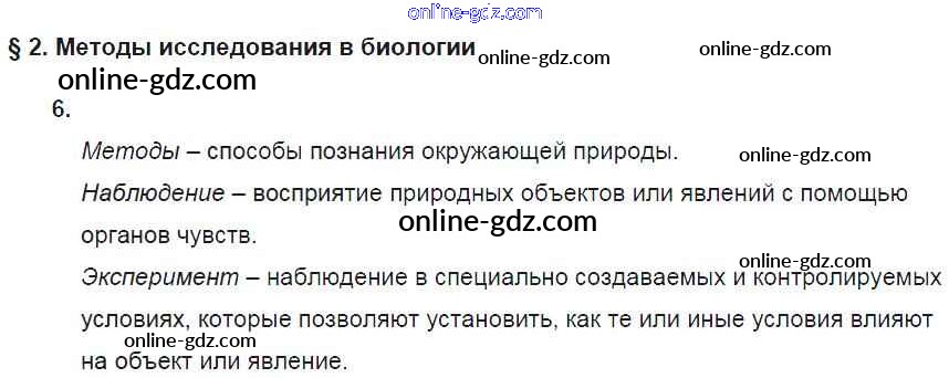 Готовые домашние задания по Биологии за 5 класс Рабочая тетрадь Пасечник Вертикаль 2015 - § 2. Методы исследования в биологии стр. 6