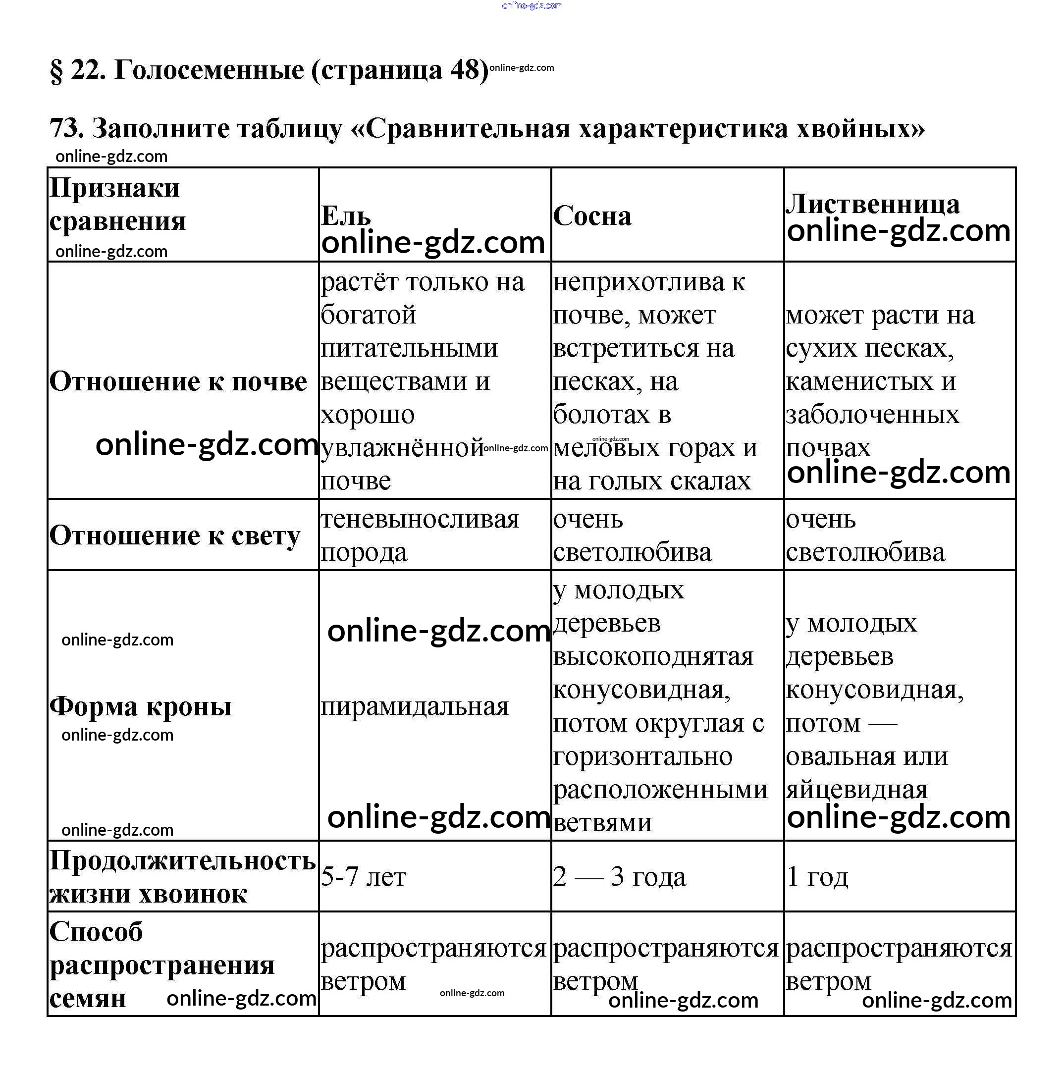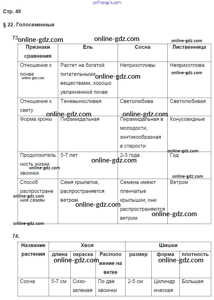Готовые домашние задания по Биологии за 5 класс Рабочая тетрадь Пасечник Вертикаль 2015 - § 22. Голосеменные стр. 48