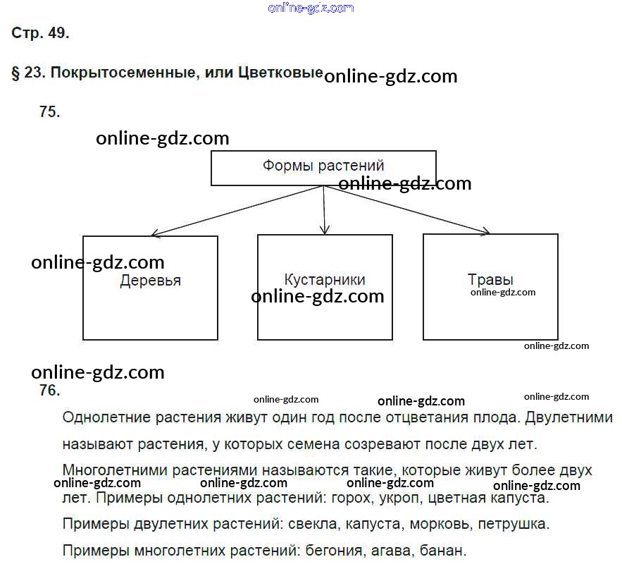 Готовые домашние задания по Биологии за 5 класс Рабочая тетрадь Пасечник Вертикаль 2015 - § 23. Покрытосеменные, или Цветковые стр. 49