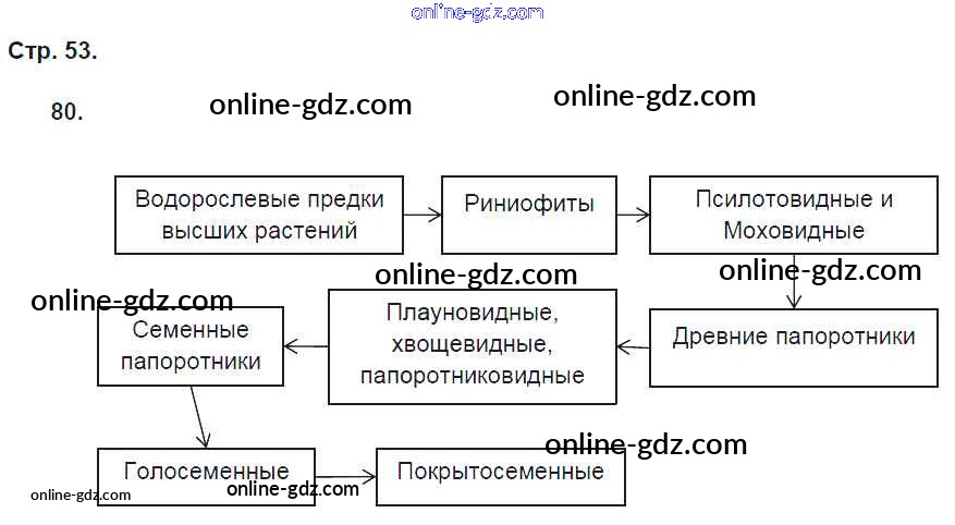 Готовые домашние задания по Биологии за 5 класс Рабочая тетрадь Пасечник Вертикаль 2015 - § 24. Происхождение растений. Основные этапы развития растительного мира стр. 53