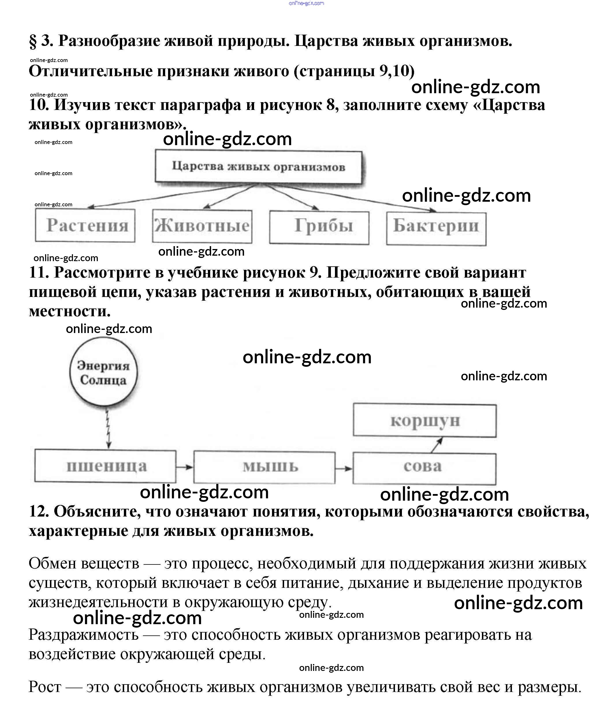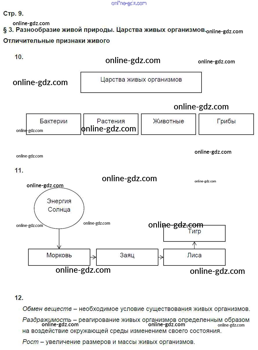 Готовые домашние задания по Биологии за 5 класс Рабочая тетрадь Пасечник Вертикаль 2015 - § 3. Разнообразие живой природы. Царства живых организмов. Отличительные признаки живого стр. 9