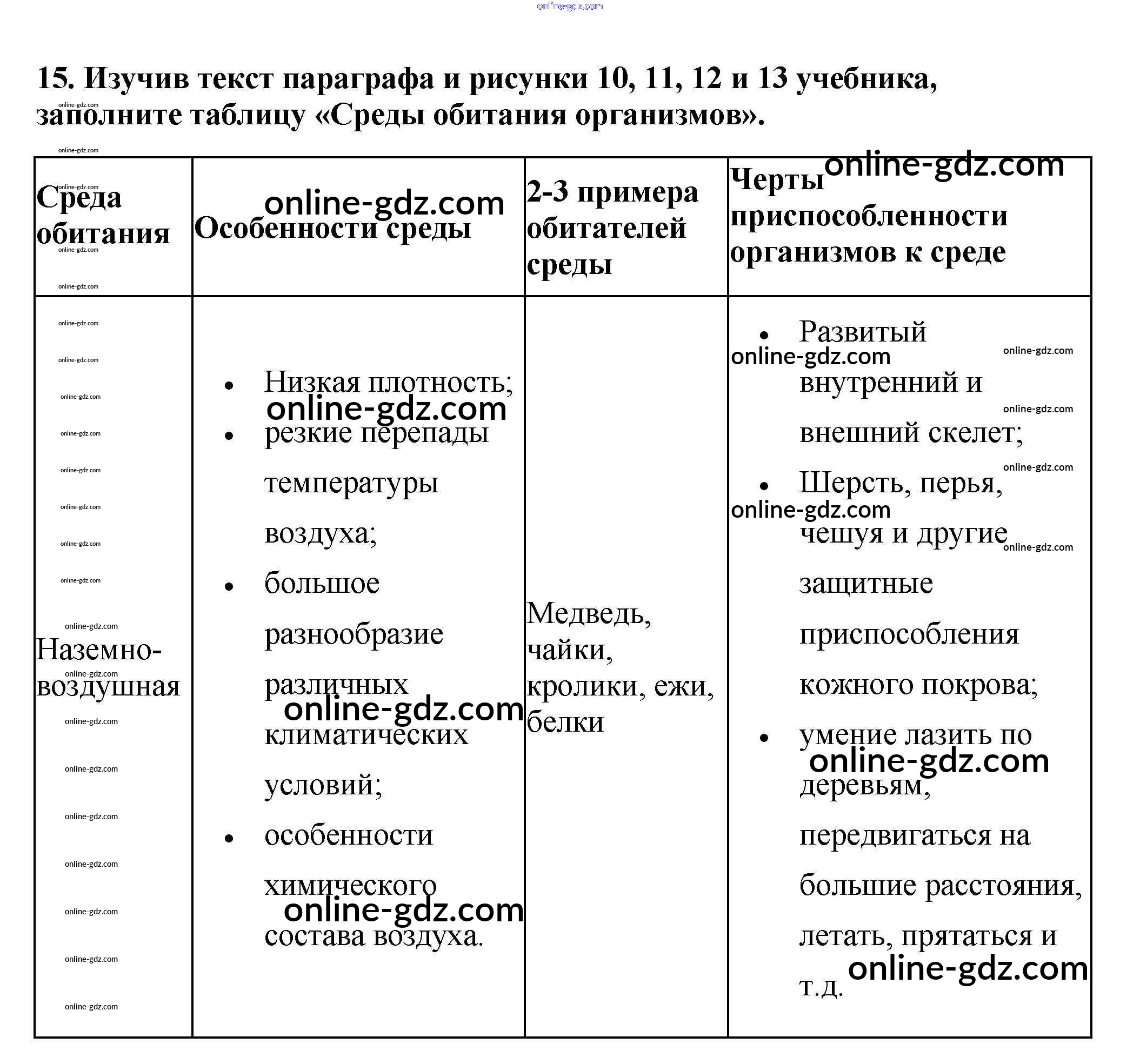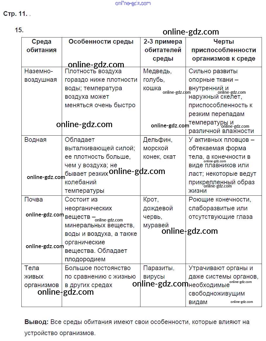 Готовые домашние задания по Биологии за 5 класс Рабочая тетрадь Пасечник Вертикаль 2015 - § 4. Среды обитания организмов стр. 11