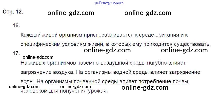 Готовые домашние задания по Биологии за 5 класс Рабочая тетрадь Пасечник Вертикаль 2015 - § 4. Среды обитания организмов стр. 12