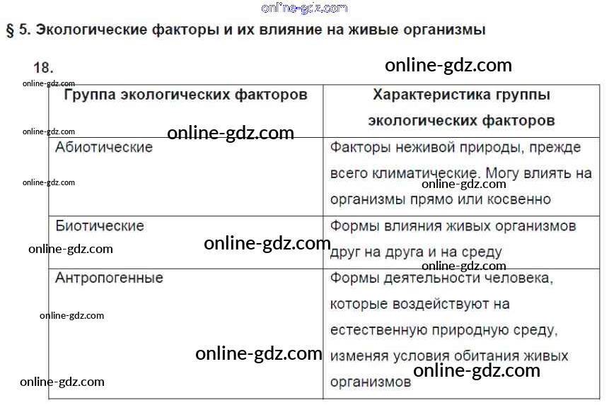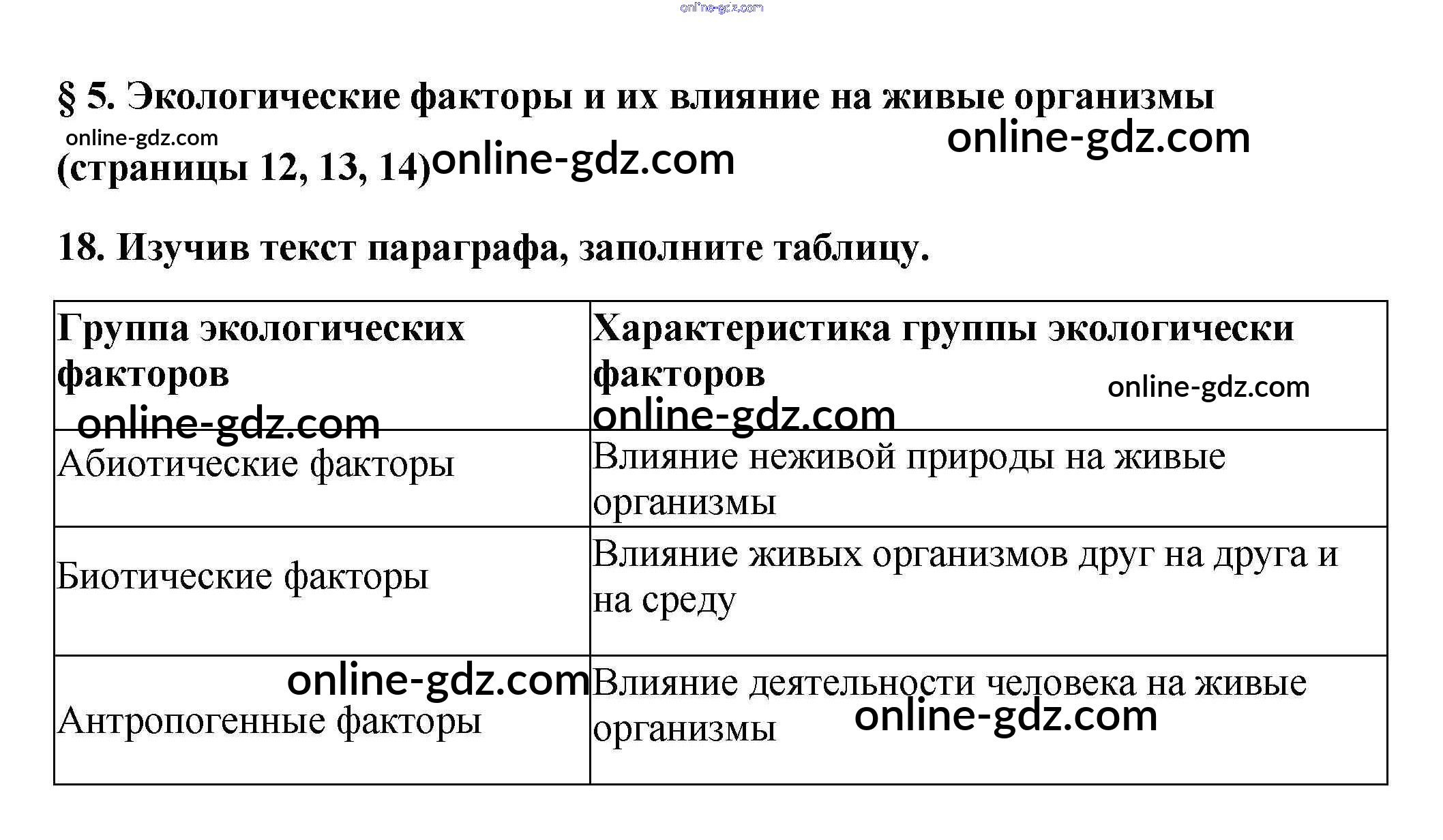Готовые домашние задания по Биологии за 5 класс Рабочая тетрадь Пасечник Вертикаль 2015 - § 5. Экологические факторы и их влияние на живые организмы стр. 12