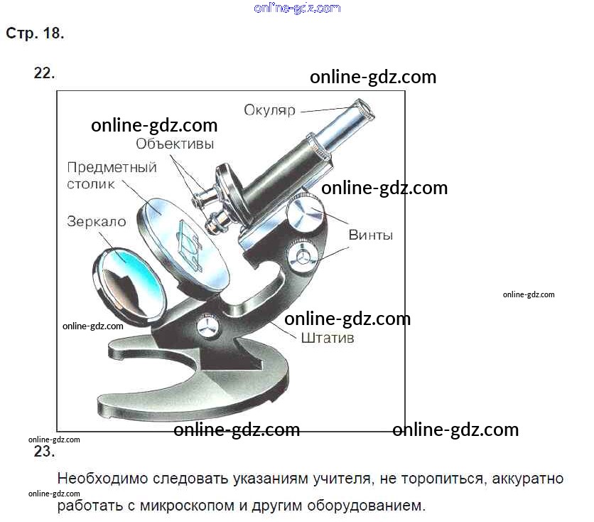Готовые домашние задания по Биологии за 5 класс Рабочая тетрадь Пасечник Вертикаль 2015 - § 6. Устройство увеличительных приборов стр. 18